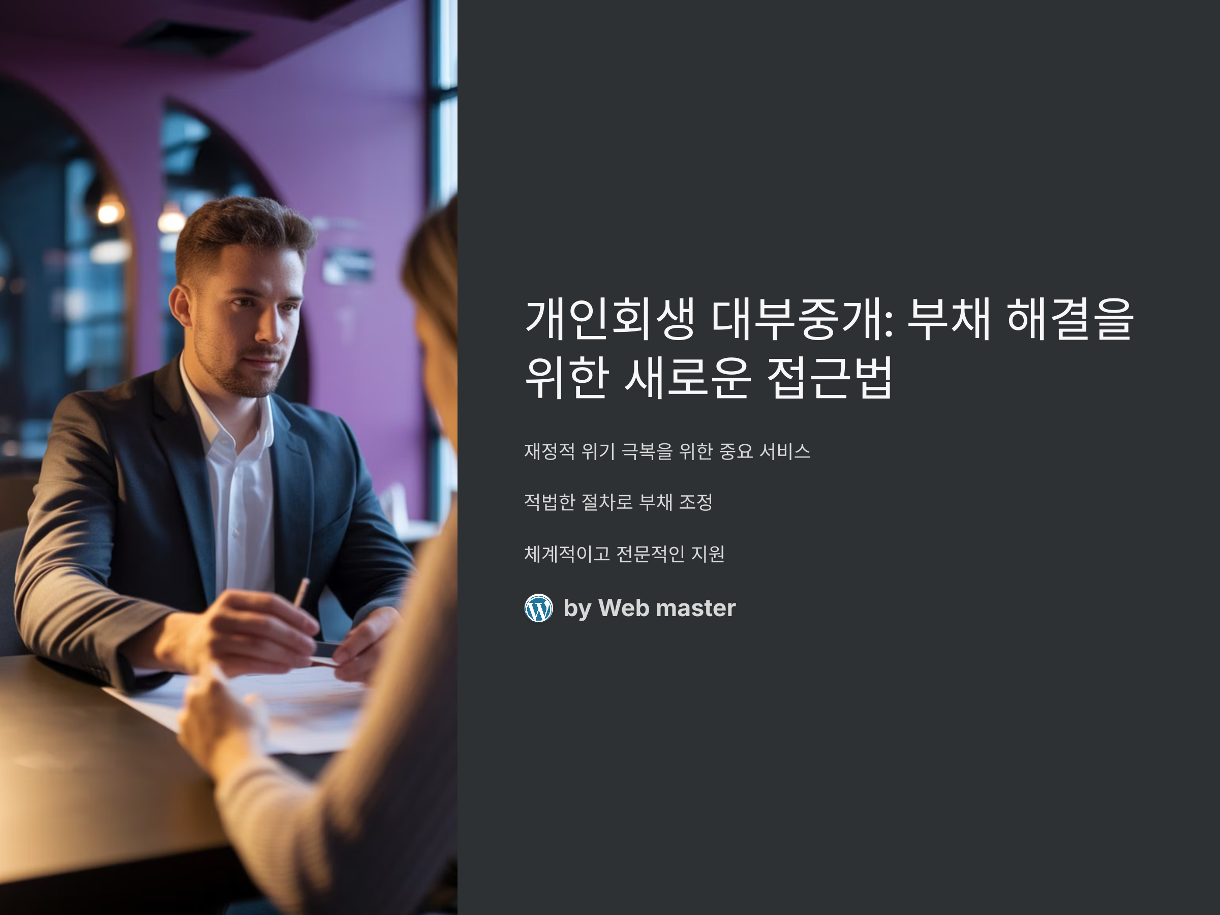 개인회생 대부중개는 최근 몇 년간 많은 사람들이 재정적인 위기를 극복하기 위해 선택하는 중요한 서비스입니다. 경제적으로 어려움을 겪고 있는 사람들이 적법한 절차를 통해 부채를 조정하고, 재정적인 자유를 되찾을 수 있는 방법을 제시하는 것이 바로 개인회생 대부중개 서비스입니다. 그동안 많은 사람들이 직접 개인회생 절차를 진행하기 어려워했지만, 대부중개 서비스를 통해 보다 체계적이고 전문적인 지원을 받을 수 있게 되었습니다.