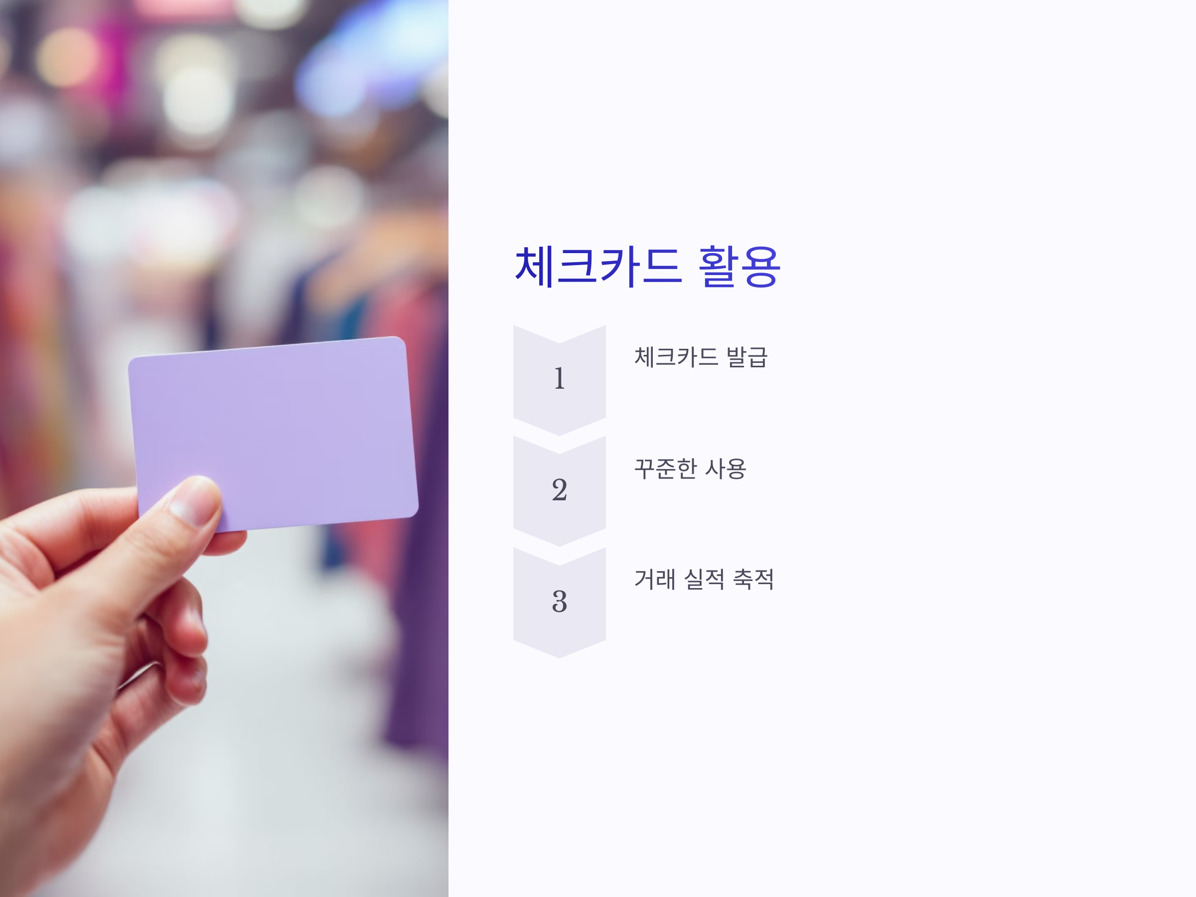 신용카드 발급이 어려운 초기 단계에서는 체크카드를 적극적으로 활용하세요. 체크카드를 사용하고 꾸준히 관리하면 은행과의 거래 실적이 쌓여 신용도 향상에 기여합니다. 특히, 급여 통장과 연계된 체크카드를 사용하면 더욱 효과적입니다.