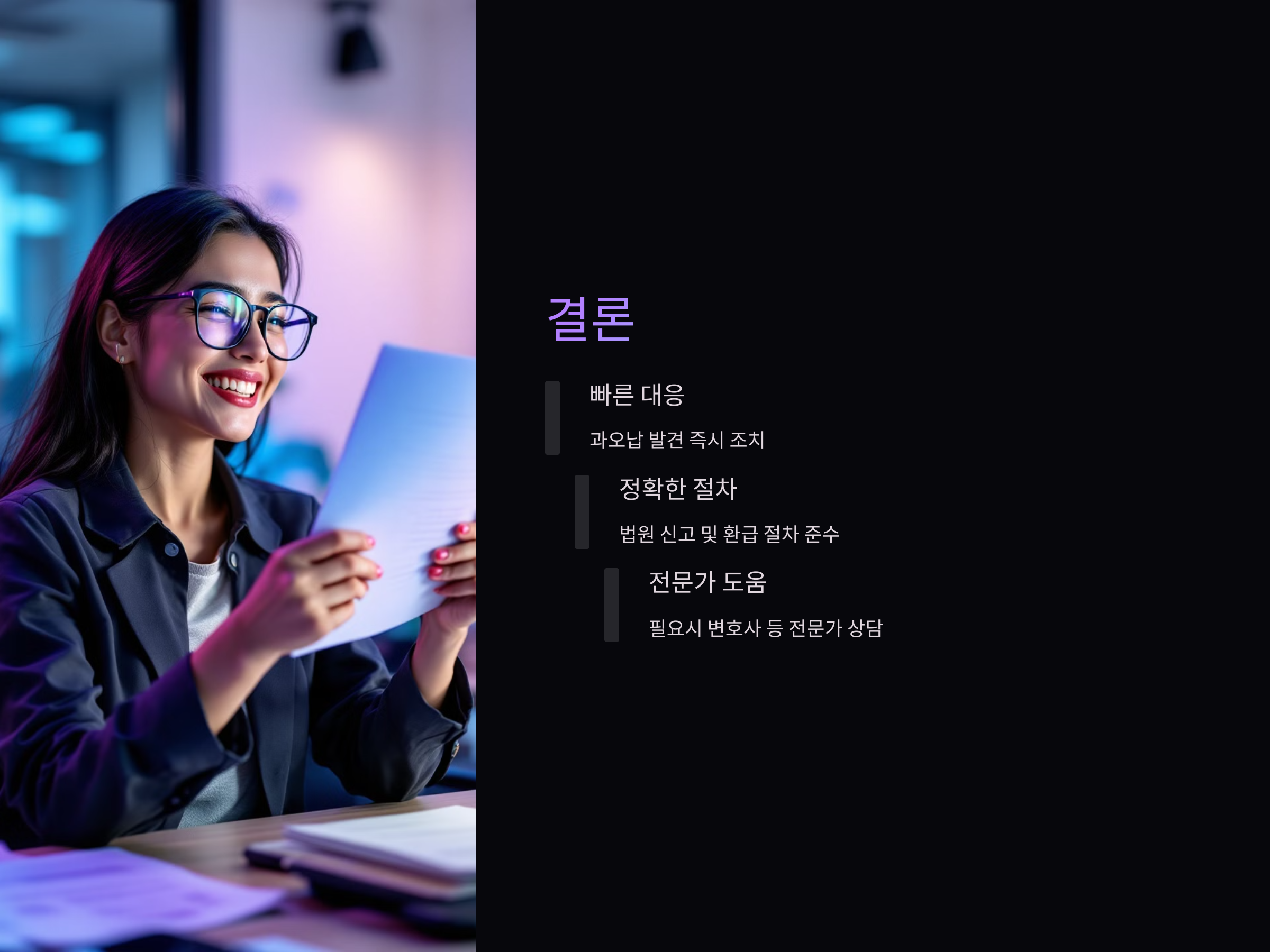 환급 절차를 시작하기 전에, 과오납이 발생한 정확한 이유와 금액을 확인하고, 필요한 서류를 준비하는 것이 중요합니다. 법원에 제출하는 서류는 변제금 과오납 사실을 입증할 수 있는 근거를 담고 있어야 하므로, 이 부분에 대해 전문가의 도움을 받는 것이 좋습니다.