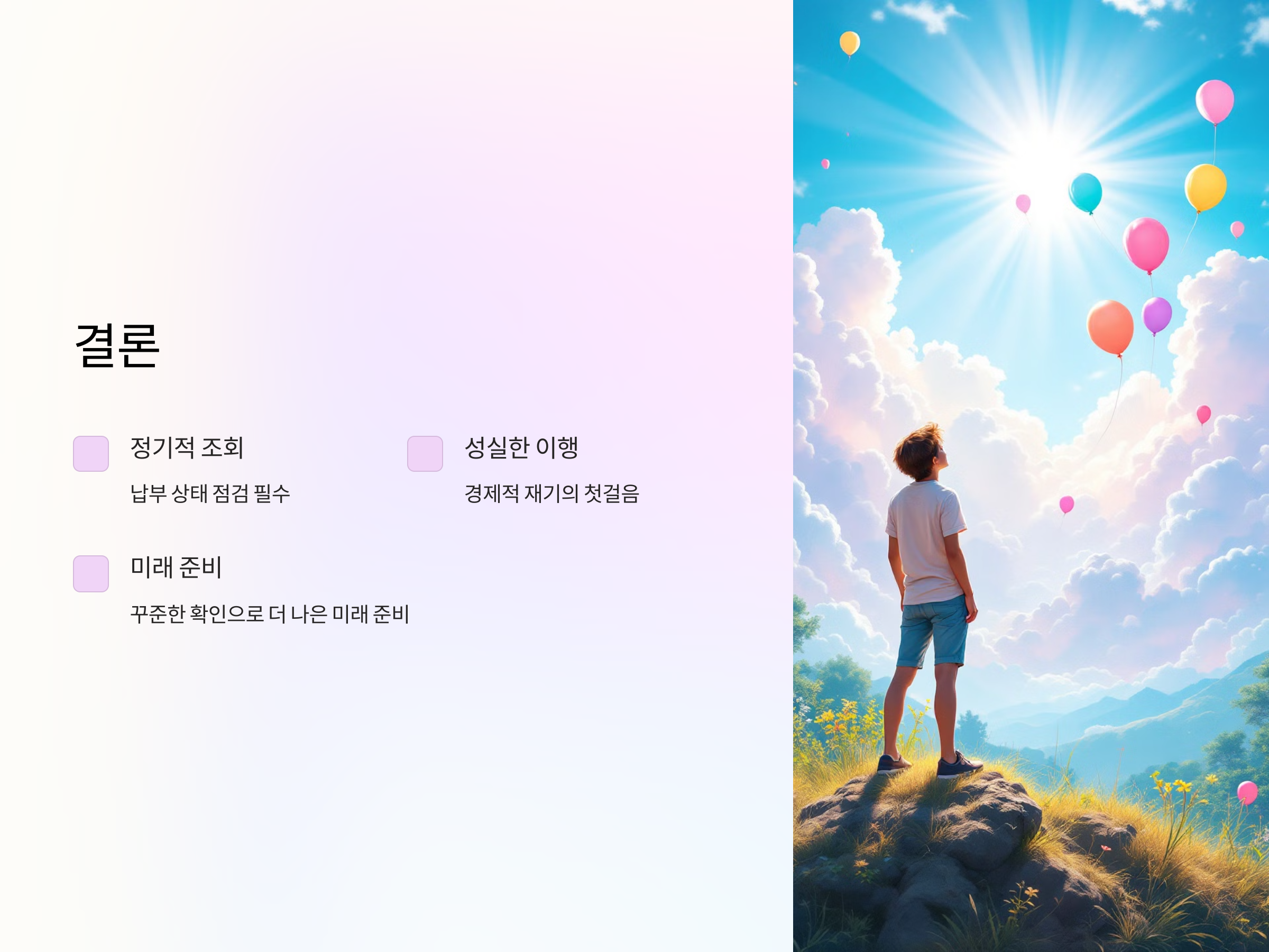 개인회생 변제금 조회는 절차를 원활하게 진행하기 위한 핵심 요소입니다. 정기적인 조회를 통해 납부 상태를 점검하고, 필요한 경우 법적 보호를 유지하기 위한 조치를 취하세요. 변제금 납부는 경제적 재기의 첫걸음입니다. 꾸준히 확인하고 성실히 이행하여 더 나은 미래를 준비하시길 바랍니다.