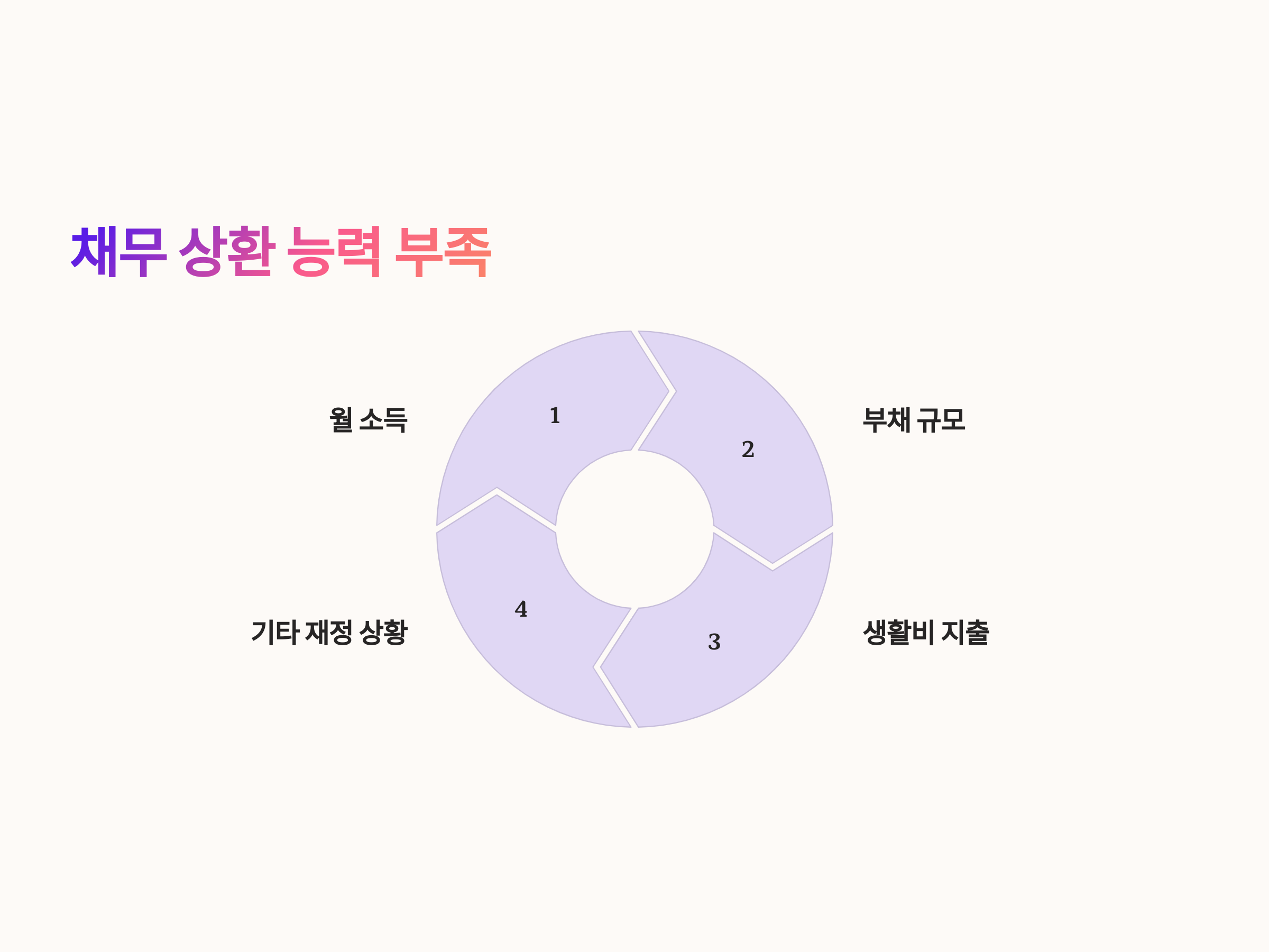채무자의 상환 능력은 월 소득 외에도 부채 규모, 생활비 지출, 기타 재정 상황을 종합적으로 고려하여 판단됩니다. 예를 들어, 소득에 비해 부채가 너무 많거나, 생활비가 지나치게 많은 경우에는 상환 능력을 의심할 수 있습니다. 이럴 경우 법원은 개인회생을 허가하지 않거나, 신청을 부결할 수 있습니다.