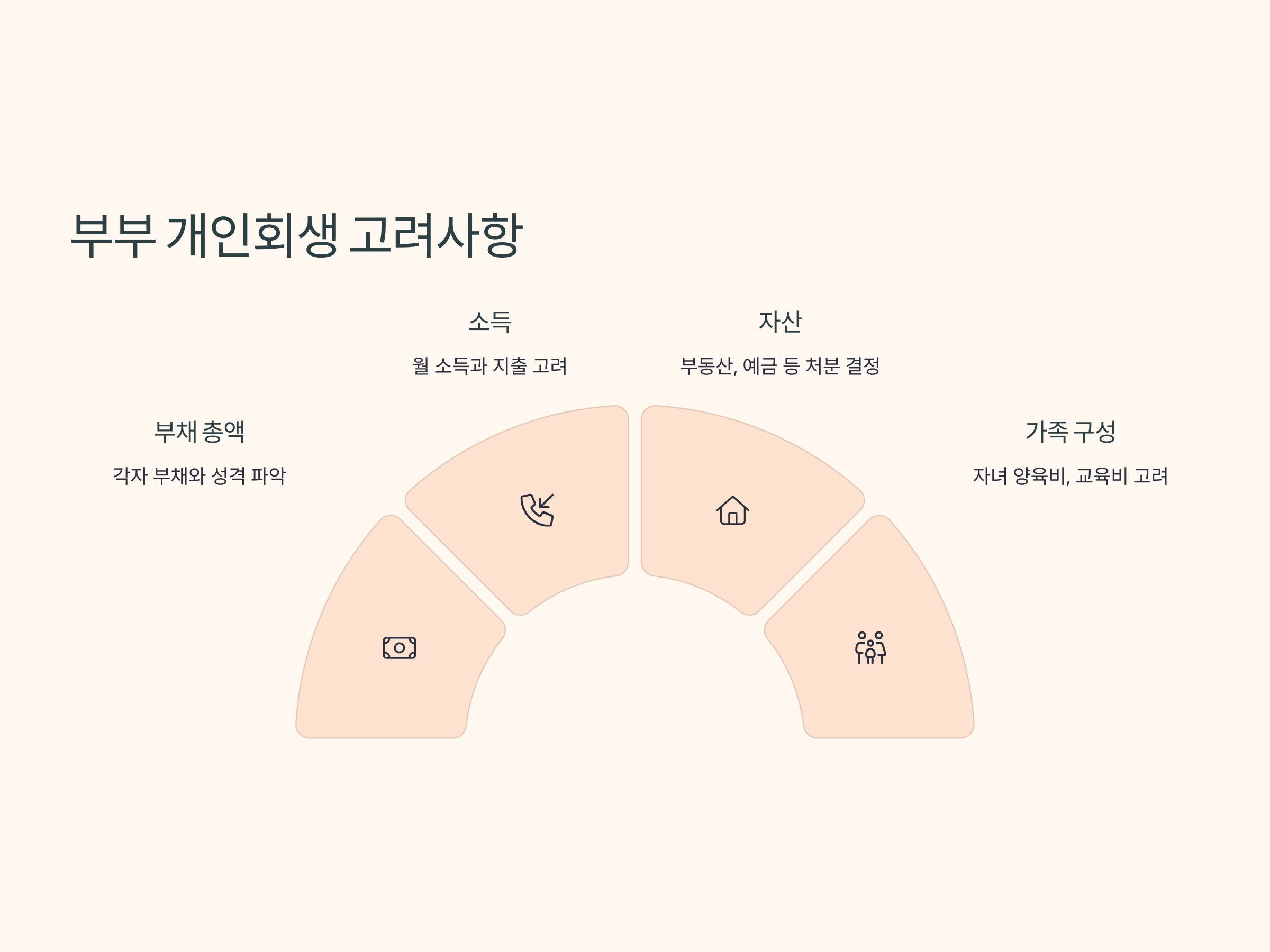 부부가 개인회생을 신청할 때 고려해야 할 중요한 요소는 다음과 같습니다: