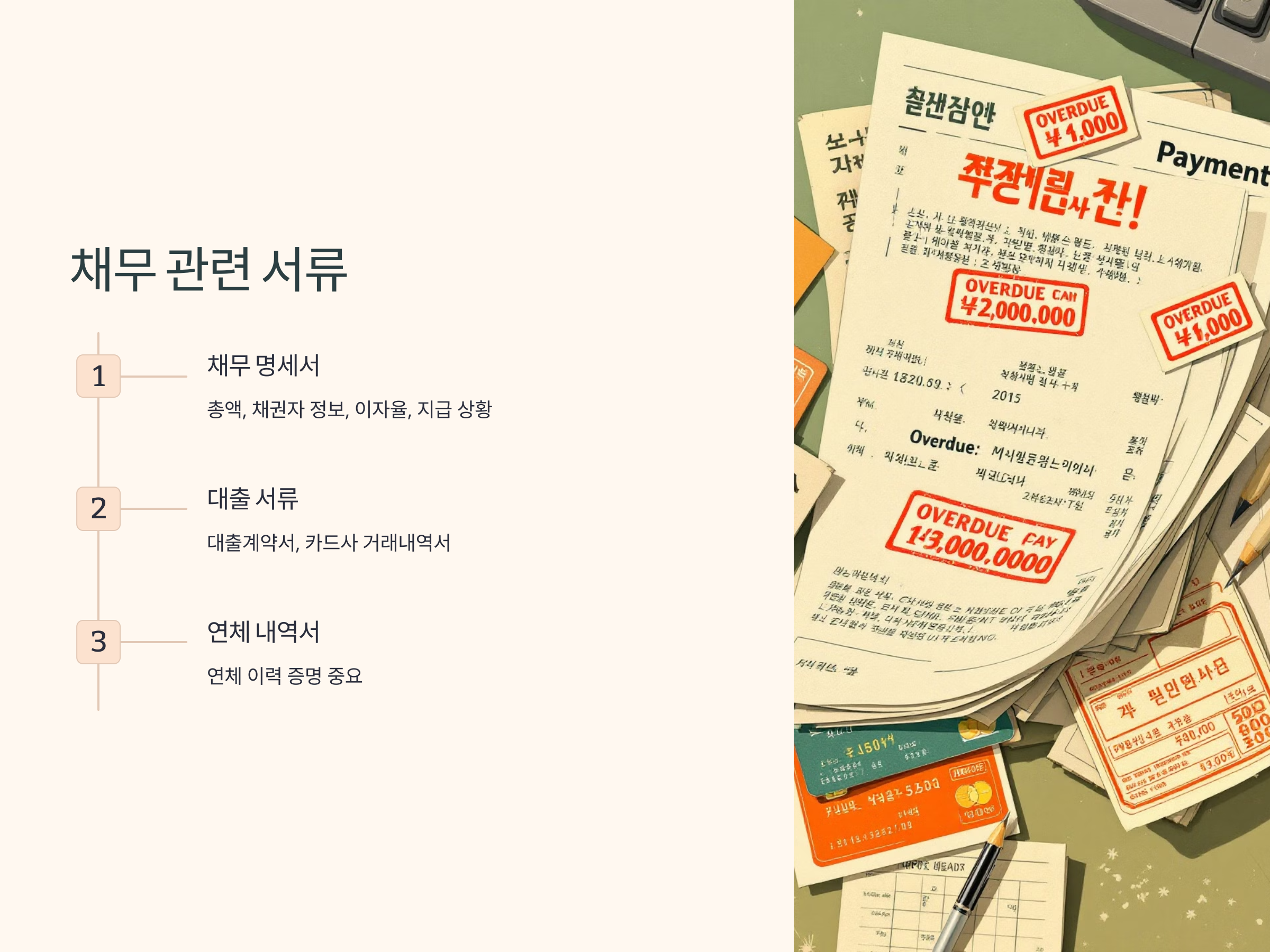 개인회생 신청 과정에서 필요한 추가 서류도 있습니다. 상황에 따라 다르지만, 아래 서류들은 참고할 만한 사항들입니다.