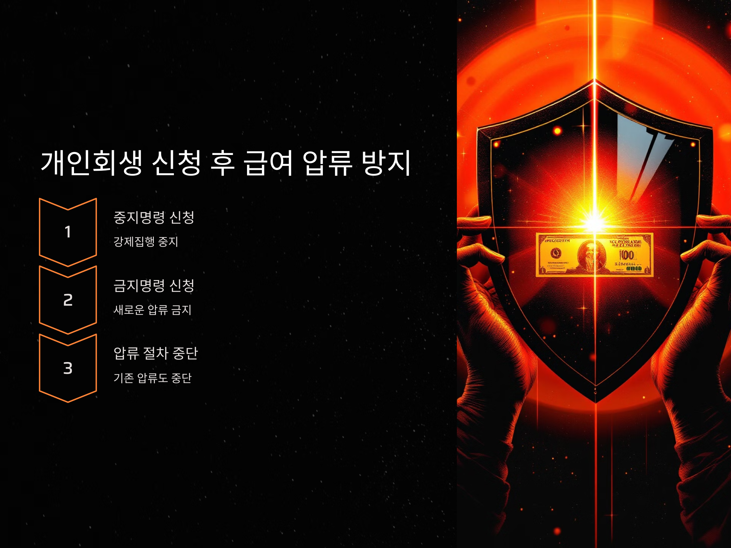 개인회생 신청과 동시에 중지명령 또는 금지명령을 신청하면, 법원은 채권자의 강제집행을 중지시키거나 금지하는 결정을 내릴 수 있습니다. 이러한 명령이 내려지면, 채권자는 더 이상 급여에 대한 압류를 진행할 수 없으며, 기존의 압류 절차도 중단됩니다. citeturn0search4