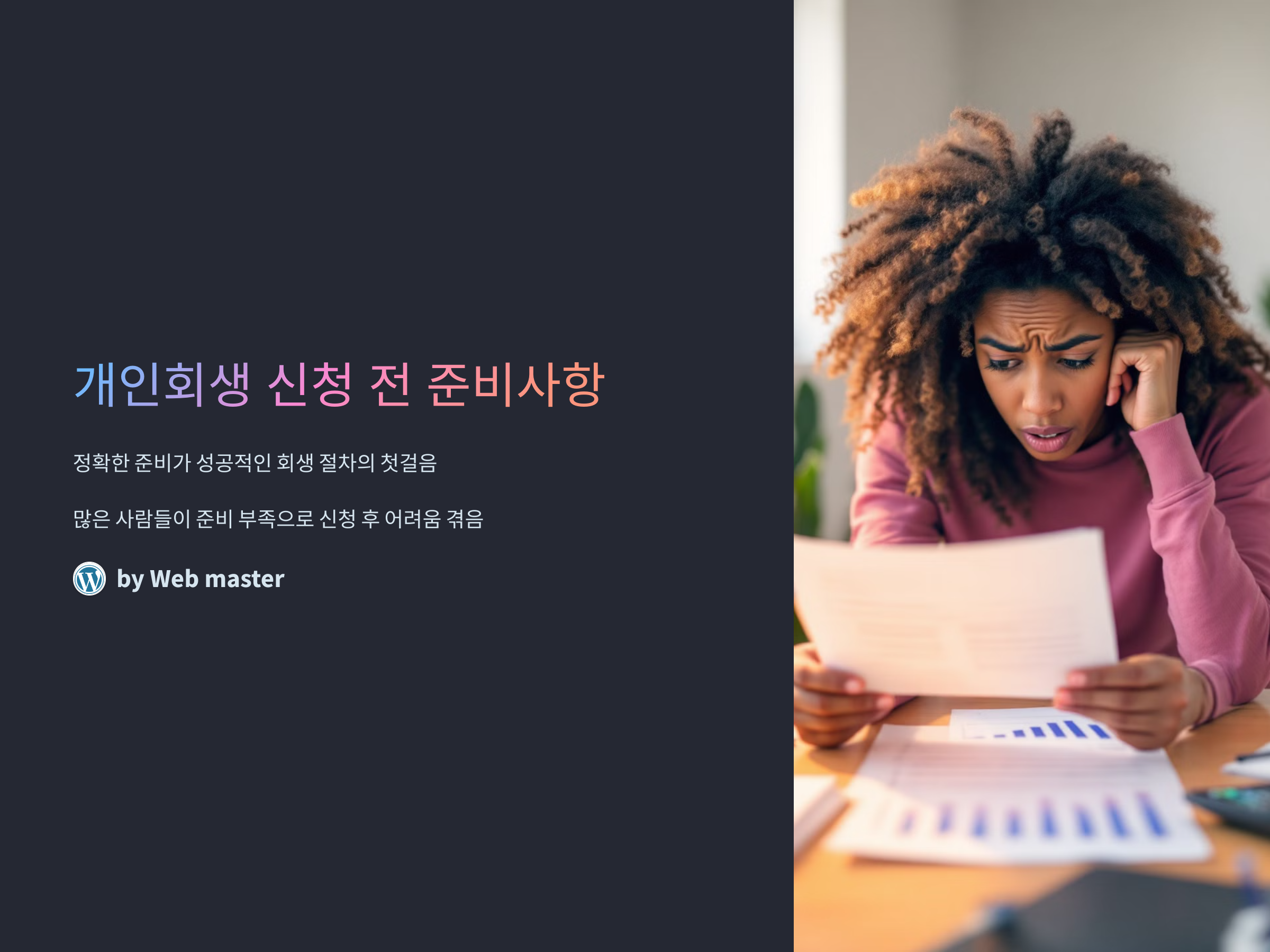 개인회생 신청을 고려하고 있다면, 정확한 준비가 성공적인 회생 절차의 첫걸음입니다. 많은 사람들이 개인회생 신청 전 준비가 중요하다는 것을 모르고 신청 후 어려움을 겪곤 합니다. 이 글에서는 개인회생 신청 전 반드시 확인해야 할 사항들에 대해 다루며, 실수 없이 준비하는 방법을 안내합니다.