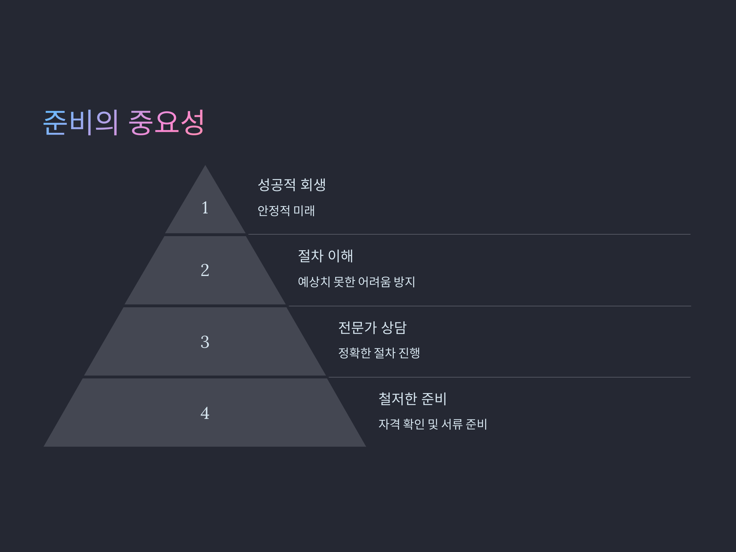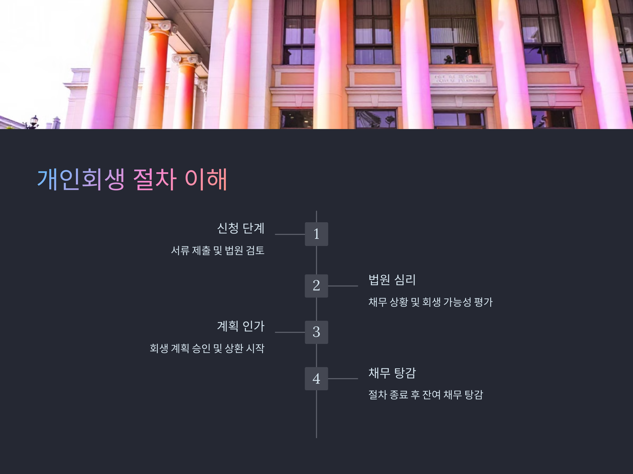 - 법원 심리: 법원에서 신청자의 채무 상황을 심리하고, 회생 가능성을 평가합니다.