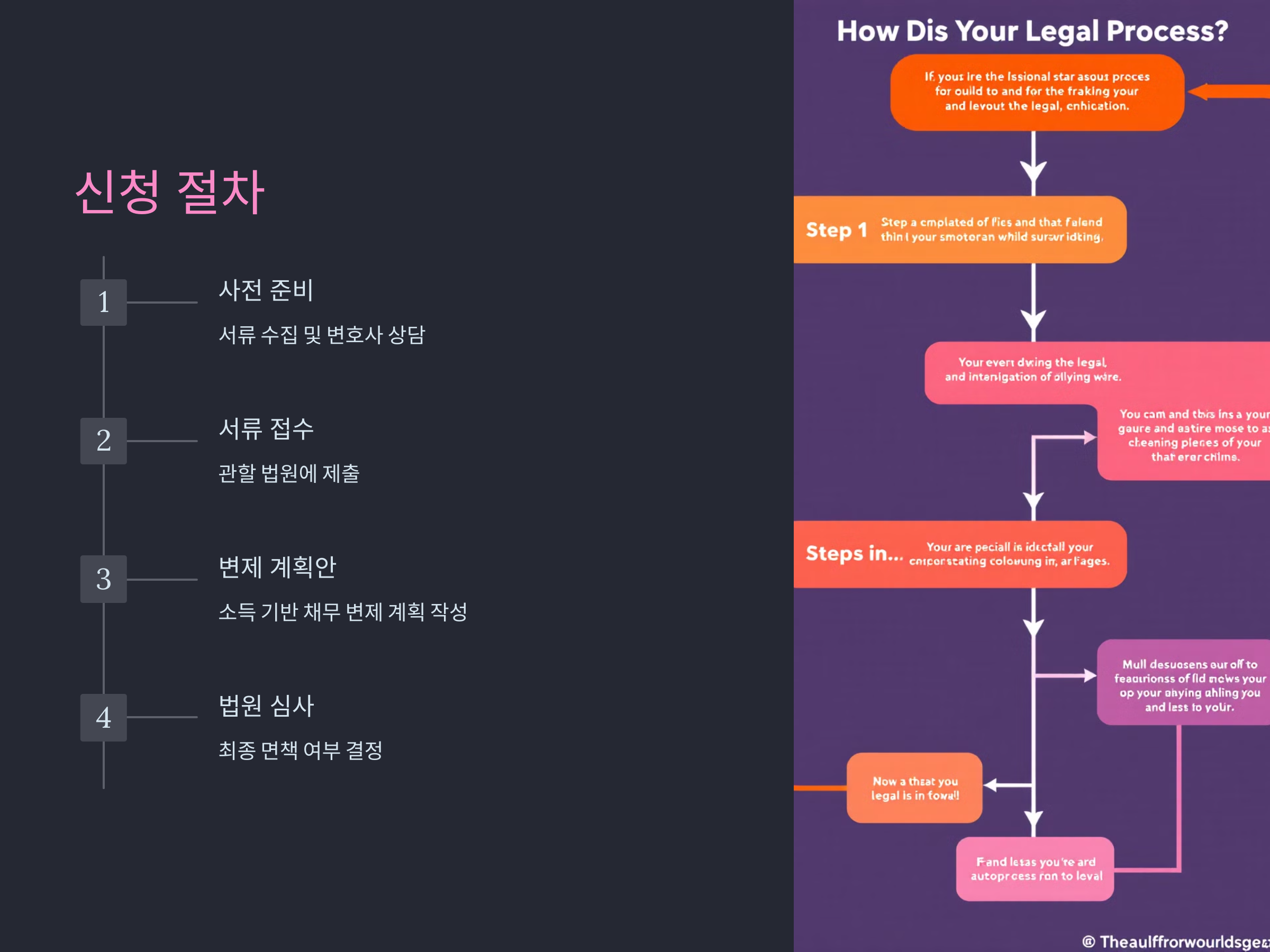 개인회생은 다음과 같은 절차로 진행됩니다. 각 단계에서 요구되는 요건을 충족하는 것이 성공의 열쇠입니다.