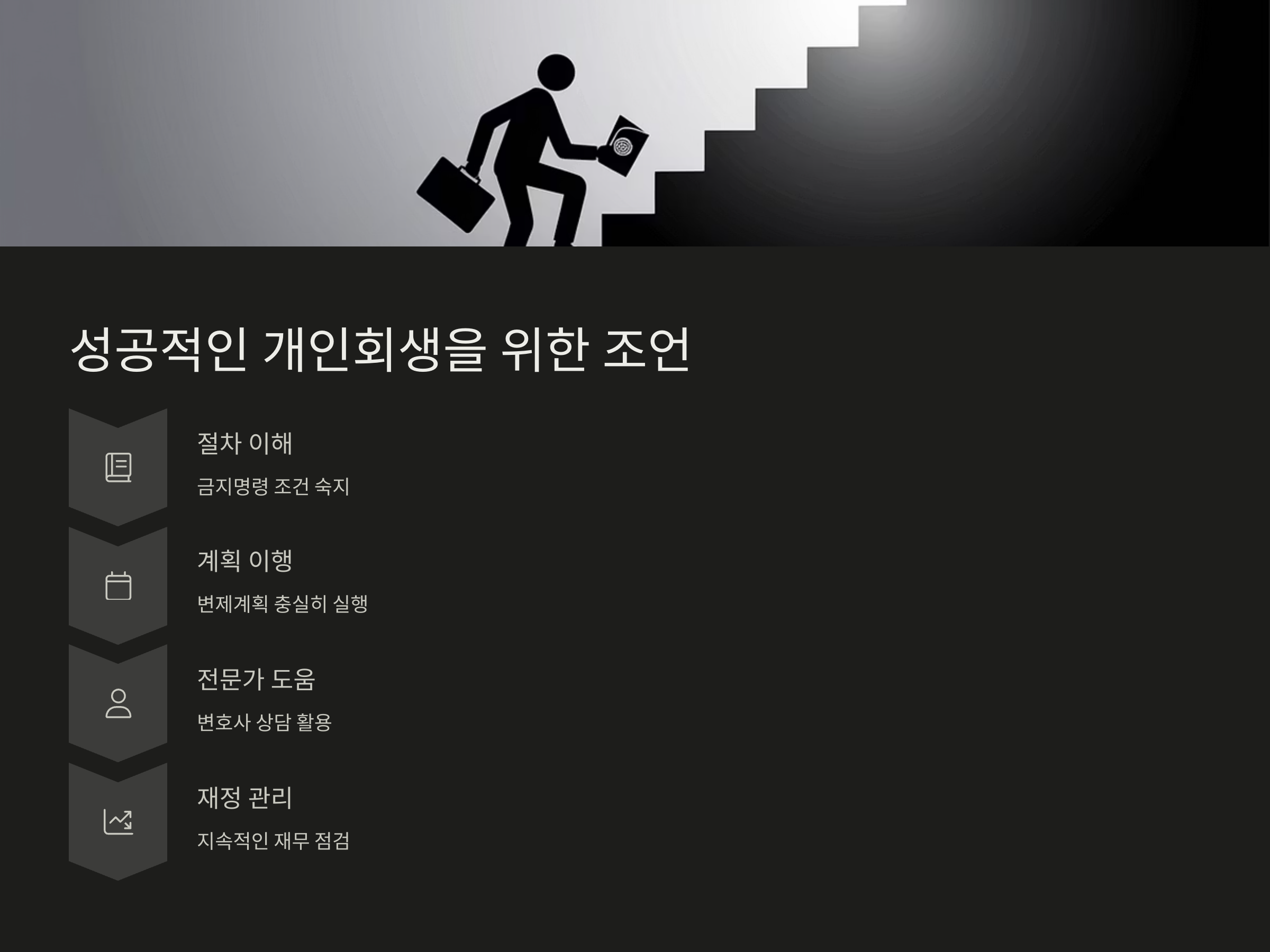 개인회생 신청 후 금지명령이 내려졌다면, 신청자는 이를 최대한 활용하여 부채를 해결하는 데 집중해야 합니다. 하지만 금지명령의 조건이나 변제계획에 대해 충분히 이해하고 있어야 합니다. 특히, 변제계획을 세울 때 자신의 재정 상태를 정확히 파악하고, 계획이 실제로 실행 가능하도록 해야 합니다.