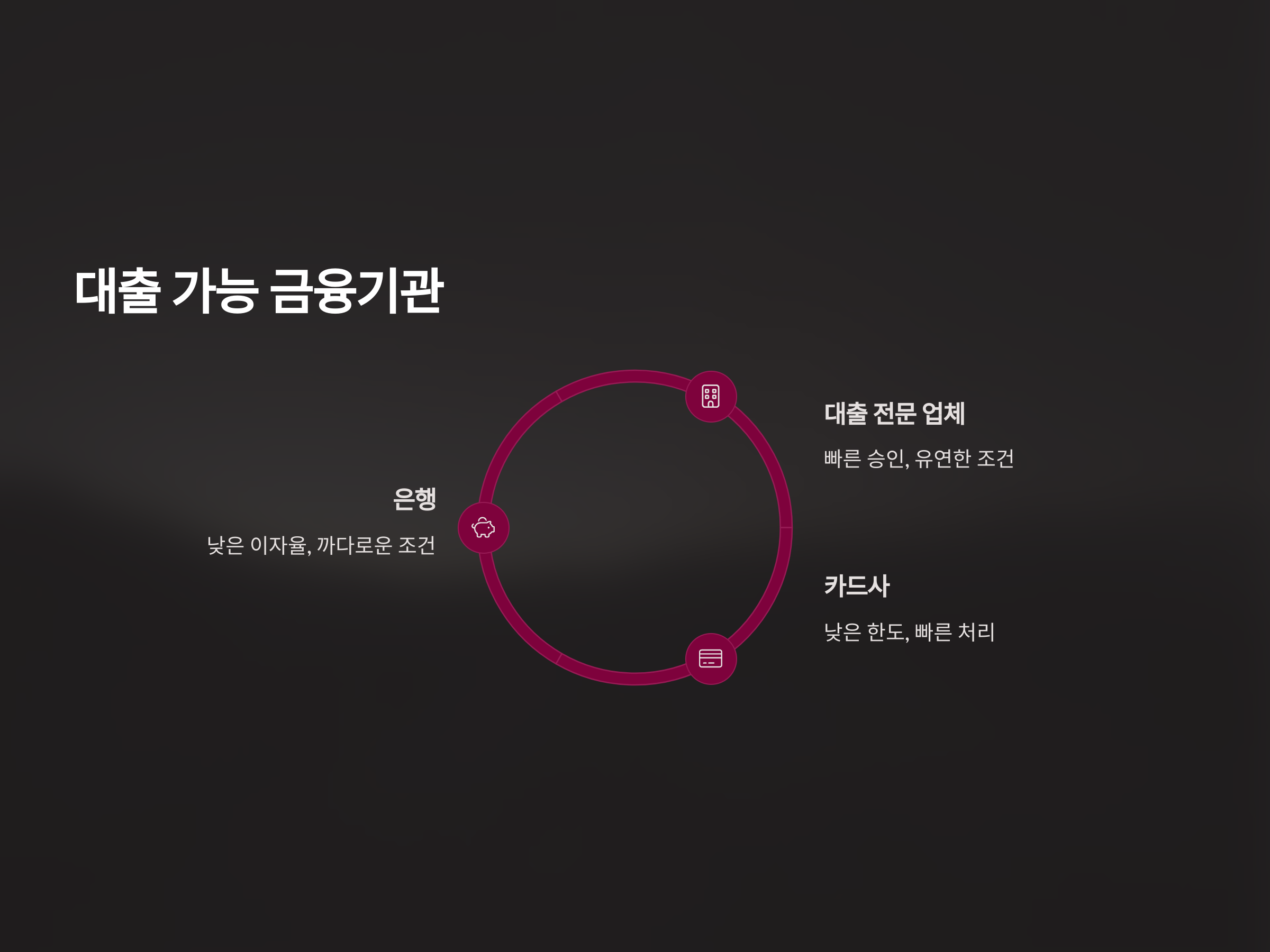 - 카드사 대출: 신용카드를 발급받은 후 카드사에서 대출을 진행하는 방식입니다. 일반적으로 대출 한도는 낮지만, 빠르게 대출을 받을 수 있습니다.