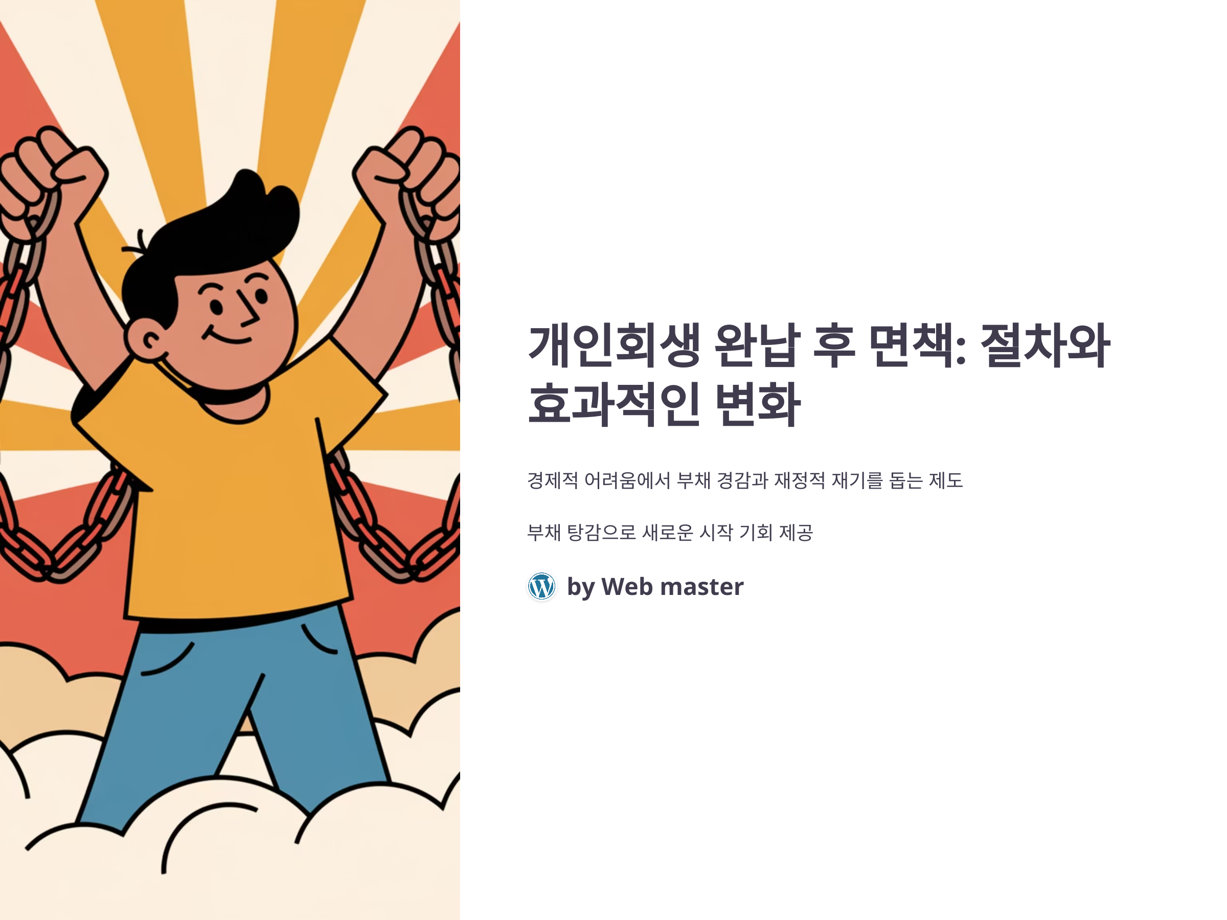 개인회생의 완납 후 면책은 부채 탕감의 최종적인 확인 절차입니다. 개인회생을 신청한 사람은 법원의 승인을 받아 채무를 일부 탕감하거나 상환 계획을 수립하게 되는데, 이 과정이 끝난 후에는 면책을 신청할 수 있습니다. 면책은 기본적으로 모든 채무에서 벗어날 수 있는 중요한 단계입니다.