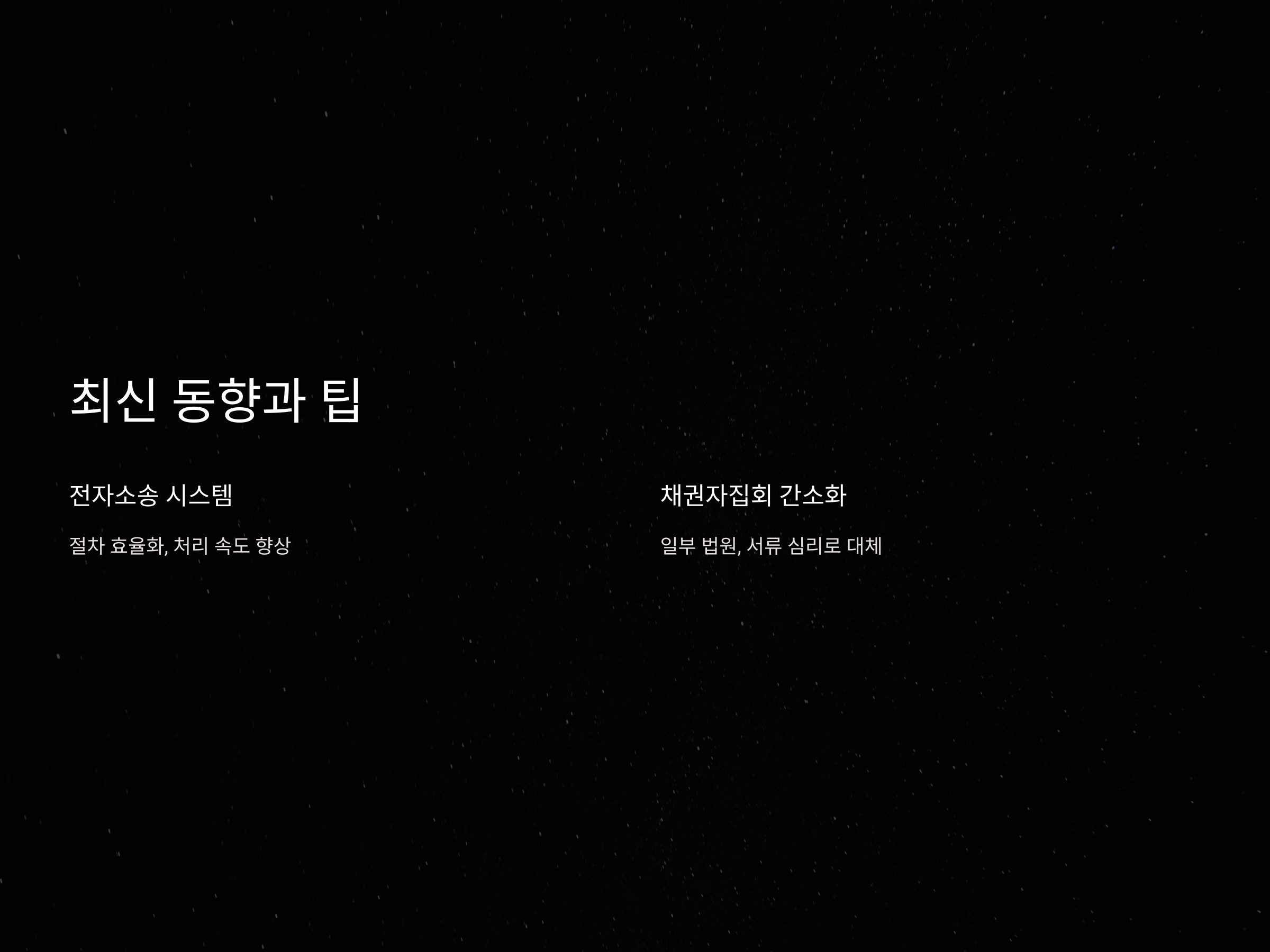 최근에는 전자소송 시스템 도입으로 절차가 조금 더 효율적으로 개선되었습니다. 서류 제출과 심리 과정이 디지털화되면서 처리 속도가 빨라지고 있습니다. 또한, 일부 법원은 채권자집회 과정을 생략하거나 서류 심리로 대체하기도 합니다. 이러한 변화를 최대한 활용하면 인가결정까지의 시간을 단축할 수 있습니다.