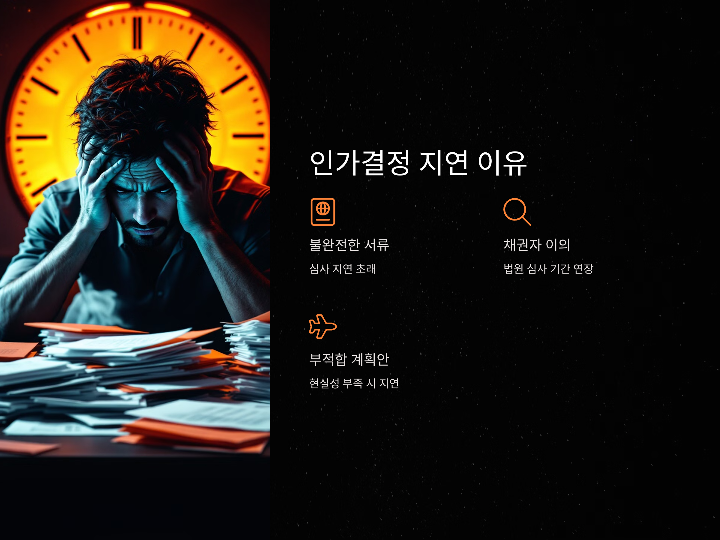 - 변제계획안의 부적합성: 현실적인 변제 가능성을 담지 못한 계획안은 인가결정을 지연시킵니다.