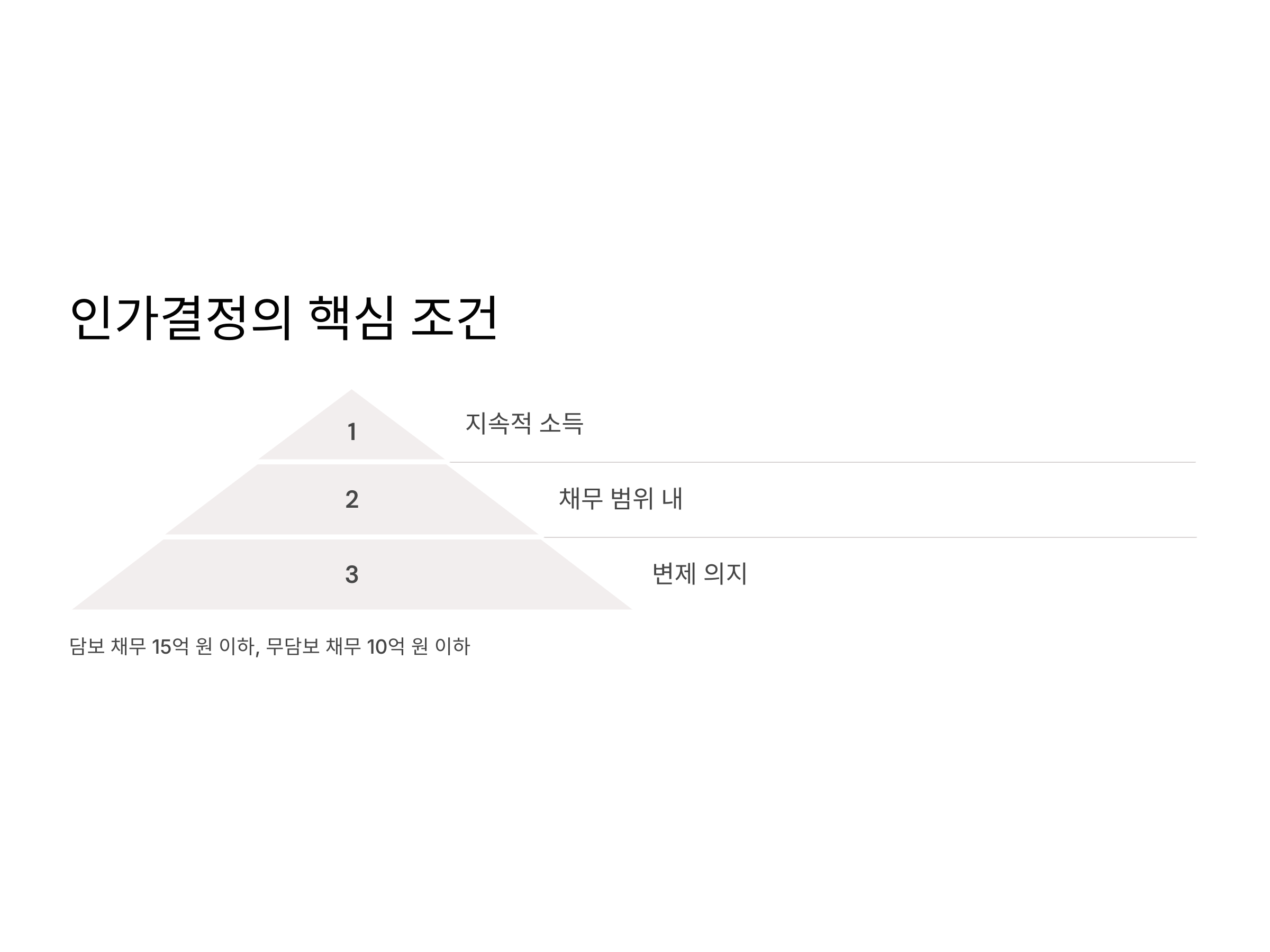 - 지속적인 소득: 채무를 갚기 위한 안정적인 소득원이 있어야 합니다.