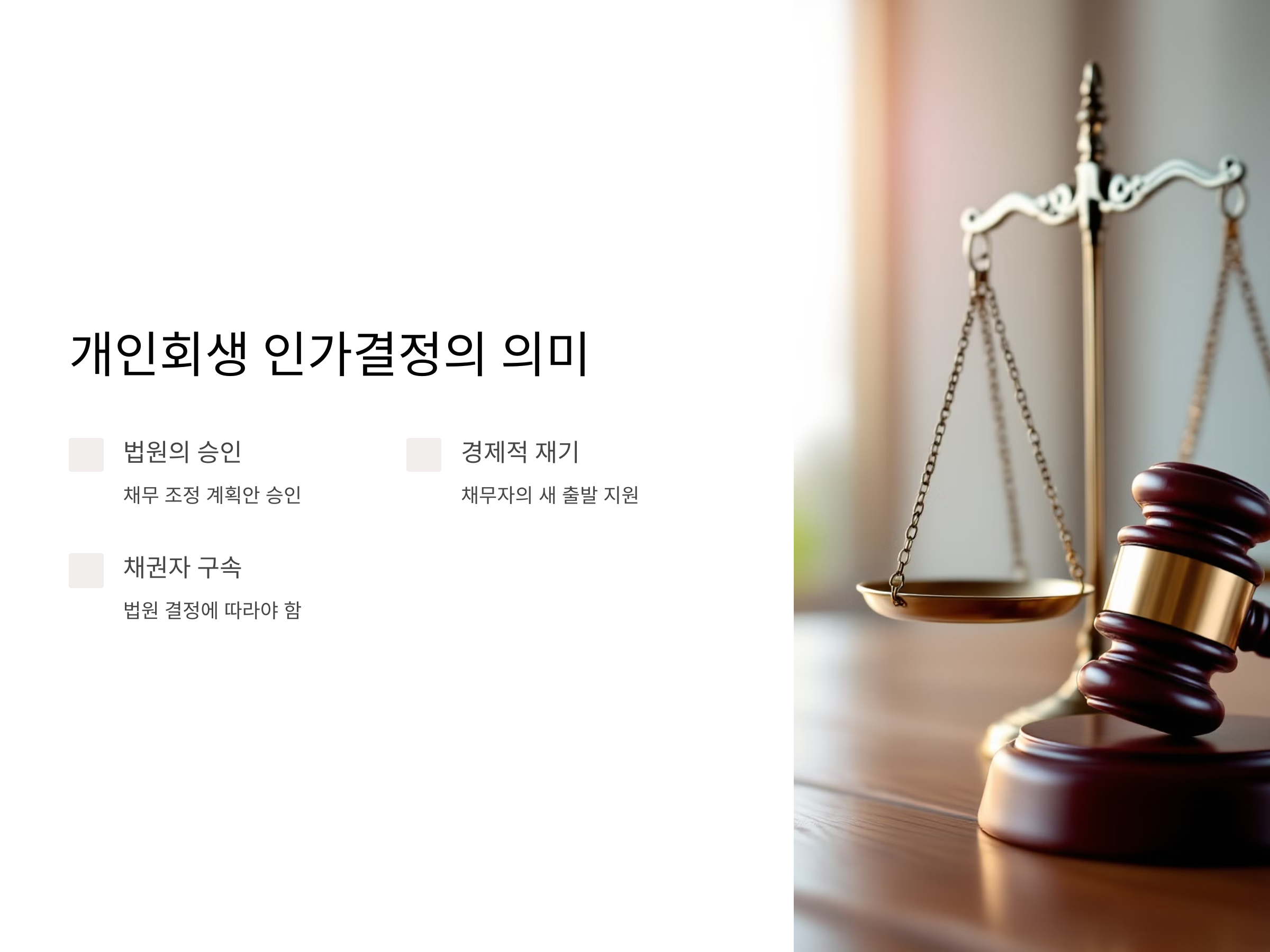 인가결정을 통해 채무자는 일정 금액의 변제만으로 나머지 채무를 면제받을 수 있어, 경제적 회복을 위한 중요한 단계로 평가받습니다.