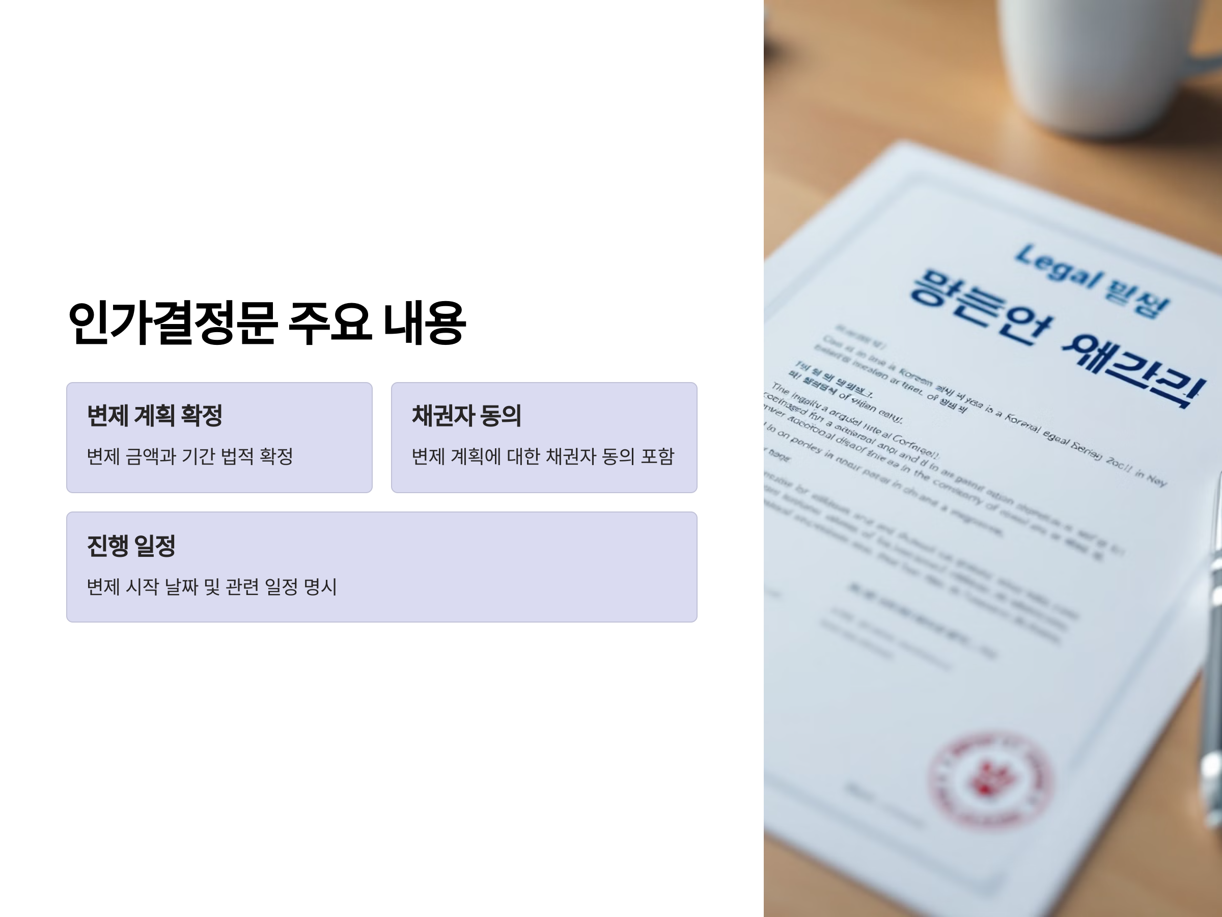 인가결정문은 앞으로의 변제 계획 이행을 위한 중요한 기준이 되므로 꼼꼼히 읽어보세요.