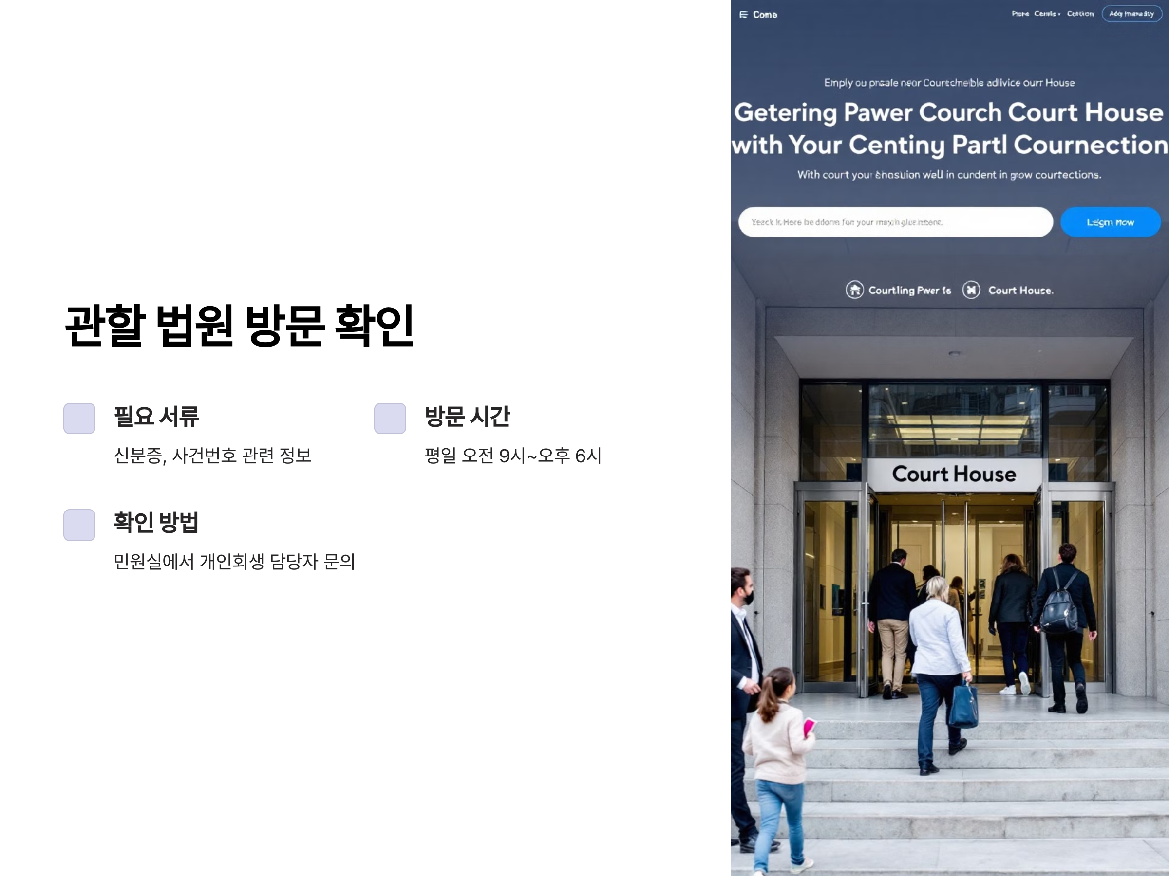 주의: 법원 업무시간(보통 평일 오전 9시~오후 6시)을 꼭 확인 후 방문하세요.