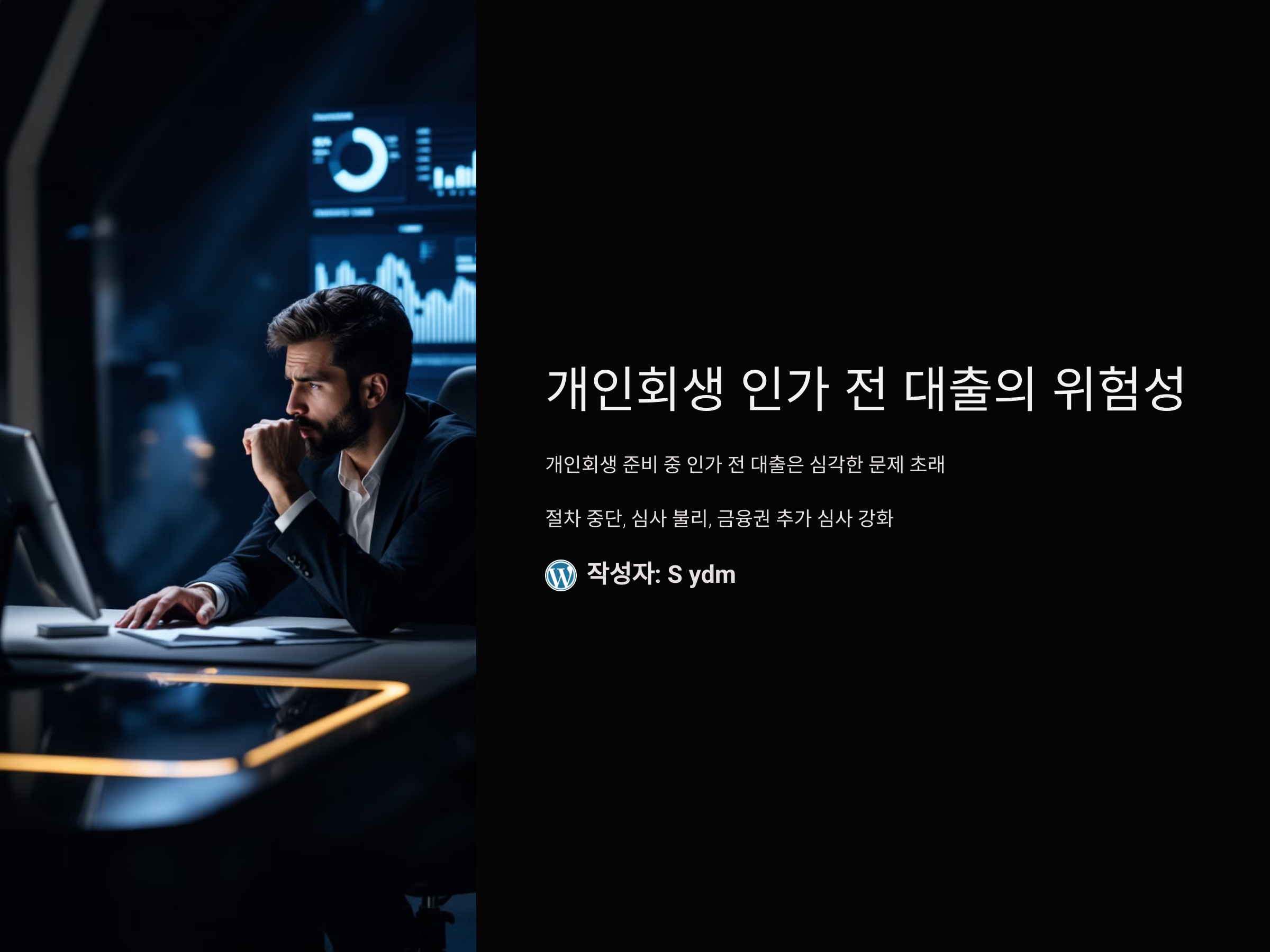 개인회생을 준비 중인 상황에서 인가 전 대출을 진행하면 심각한 문제가 발생할 수 있습니다. 대출을 통해 자금을 마련하려는 시도는 긴급한 상황에서 유혹적일 수 있지만, 자칫 개인회생 절차가 중단되거나 심사 과정에서 불리하게 작용할 수 있습니다. 최근에는 금융권에서 이런 사례를 주시하며 추가적인 심사를 강화하고 있어 더욱 주의가 필요합니다.