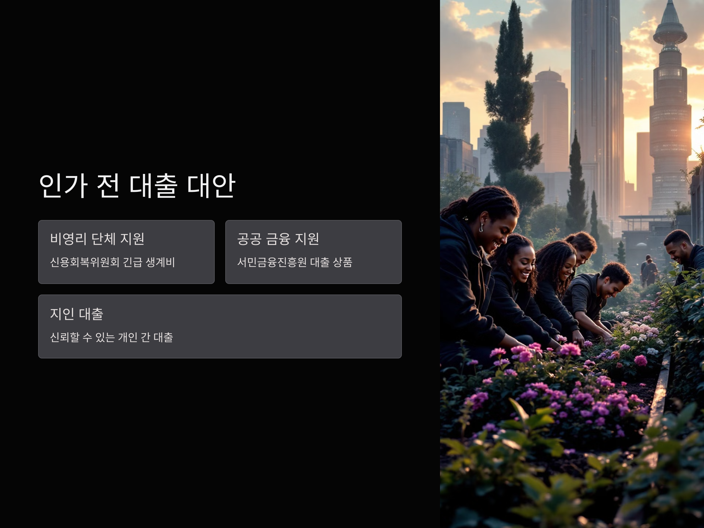개인회생 인가 전 대출을 피할 수 없는 경우라면, 다음과 같은 대안을 검토해볼 수 있습니다.