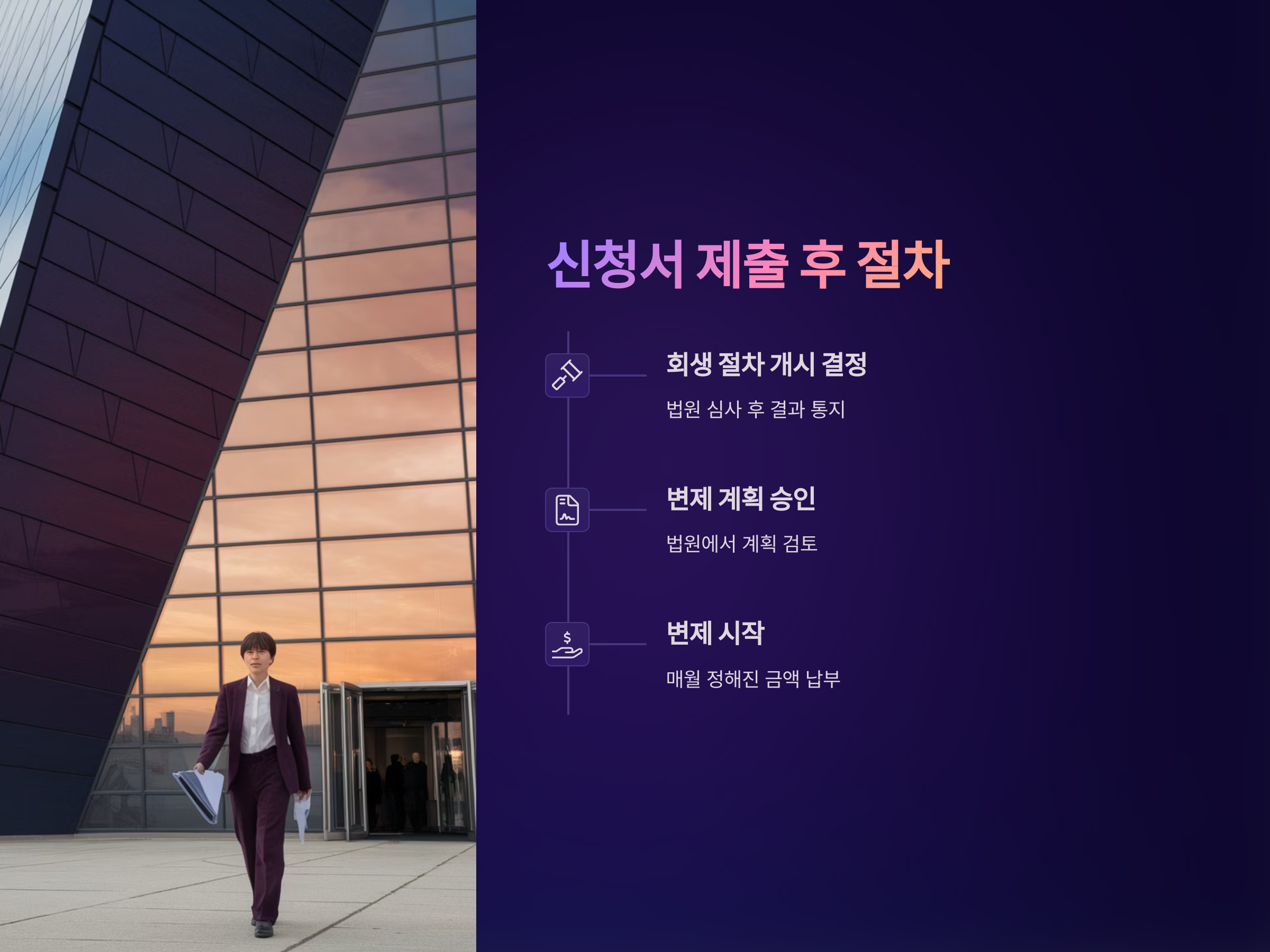이후 변제 계획에 따라 정해진 금액을 매월 납부하며, 채무를 갚아 나가게 됩니다. 변제 과정 중에는 계획을 변경할 수 있는 기회도 있지만, 법원의 승인을 받아야 합니다.