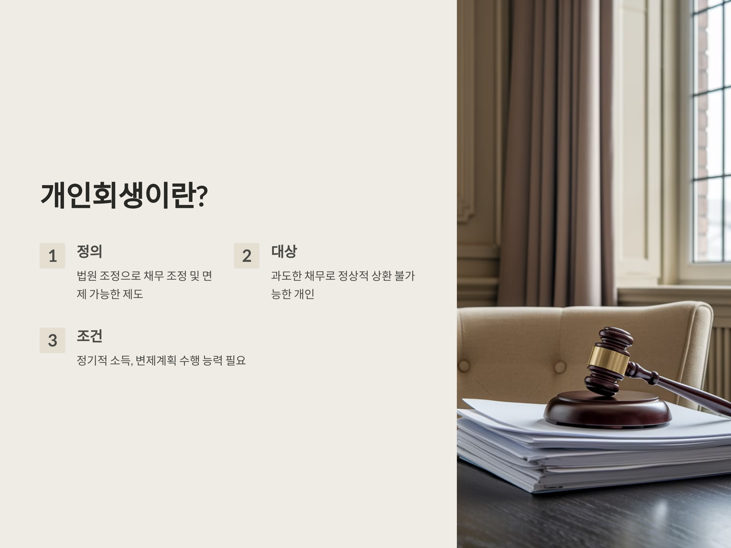 - 적용 대상: 과도한 채무로 인해 정상적인 상환이 불가능한 개인