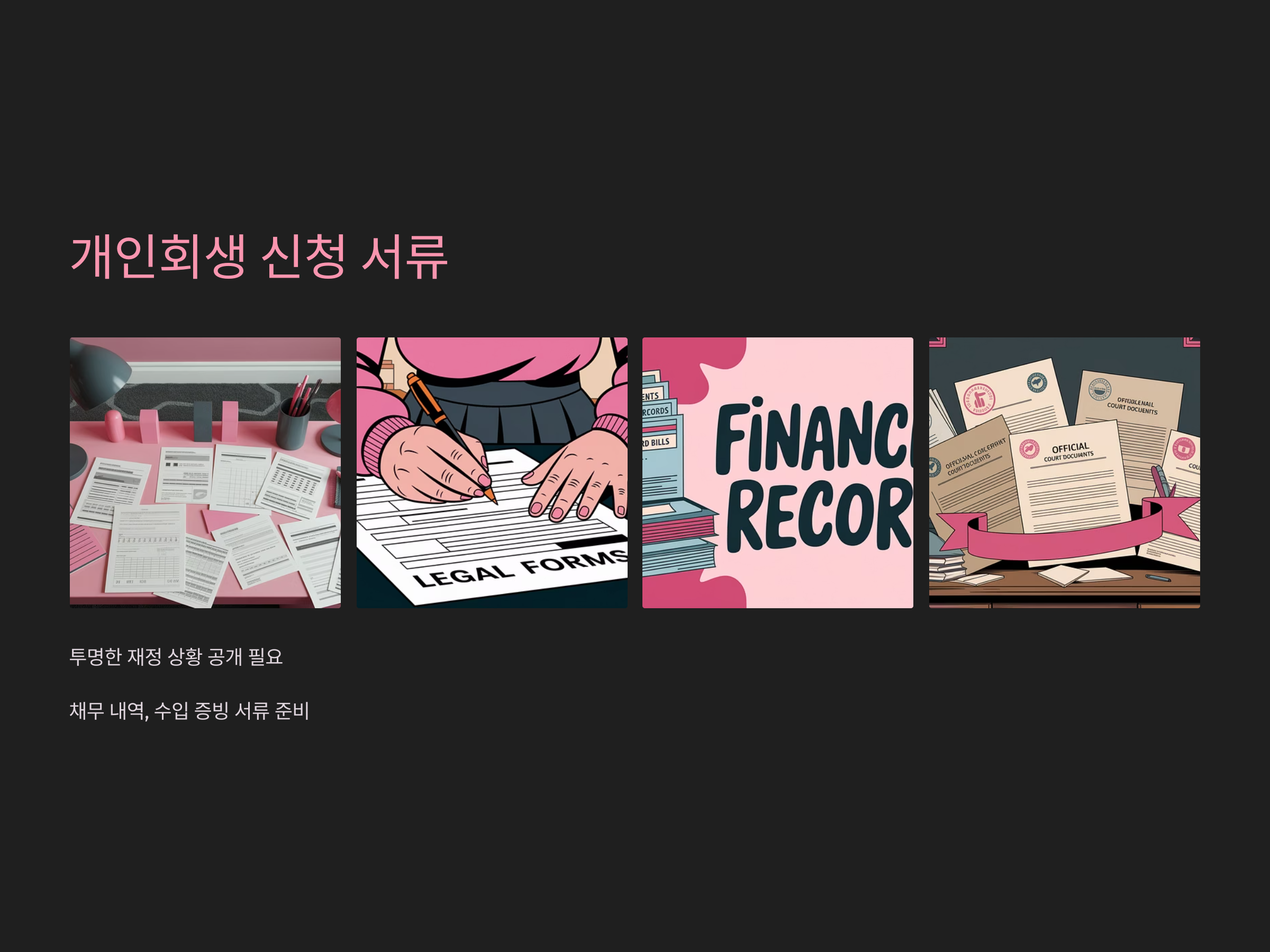 개인회생을 통해 채무 문제를 해결하고 싶은 분들은 법적 절차를 꼼꼼히 확인한 후, 필요한 서류를 준비하여 법원에 신청하시길 바랍니다. 법적인 제도를 통해 어려운 상황에서 새로운 길을 찾아갈 수 있습니다.