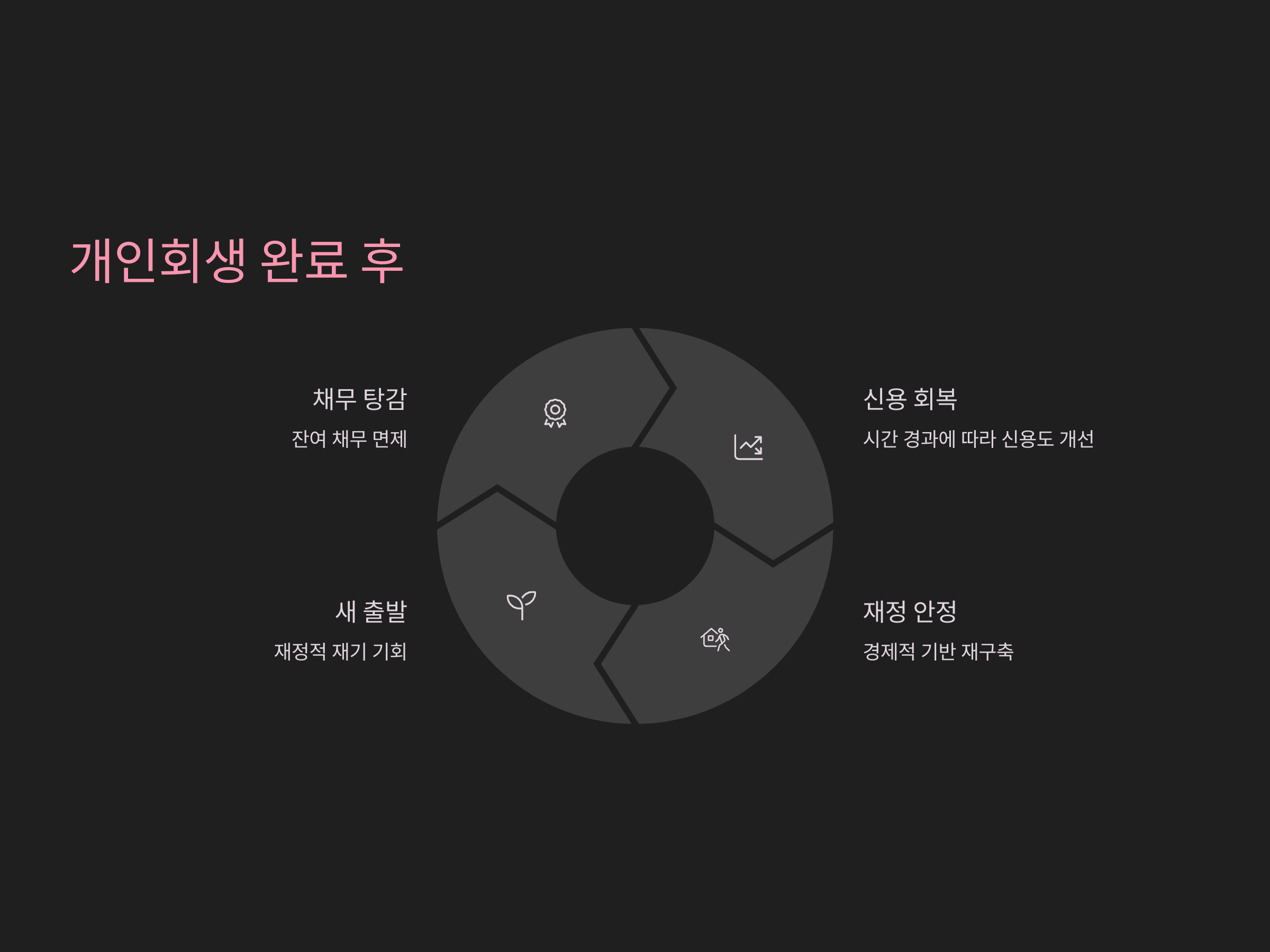 변제 계획에 따라 상환 기간이 시작됩니다. 일반적으로 상환 기간은 3~5년으로 설정되며, 이 기간 동안 성실히 상환을 이어나가야 합니다. 상환이 완료되면 나머지 채무는 면제되며, 채무자는 새로운 출발을 할 수 있는 기회를 얻습니다.