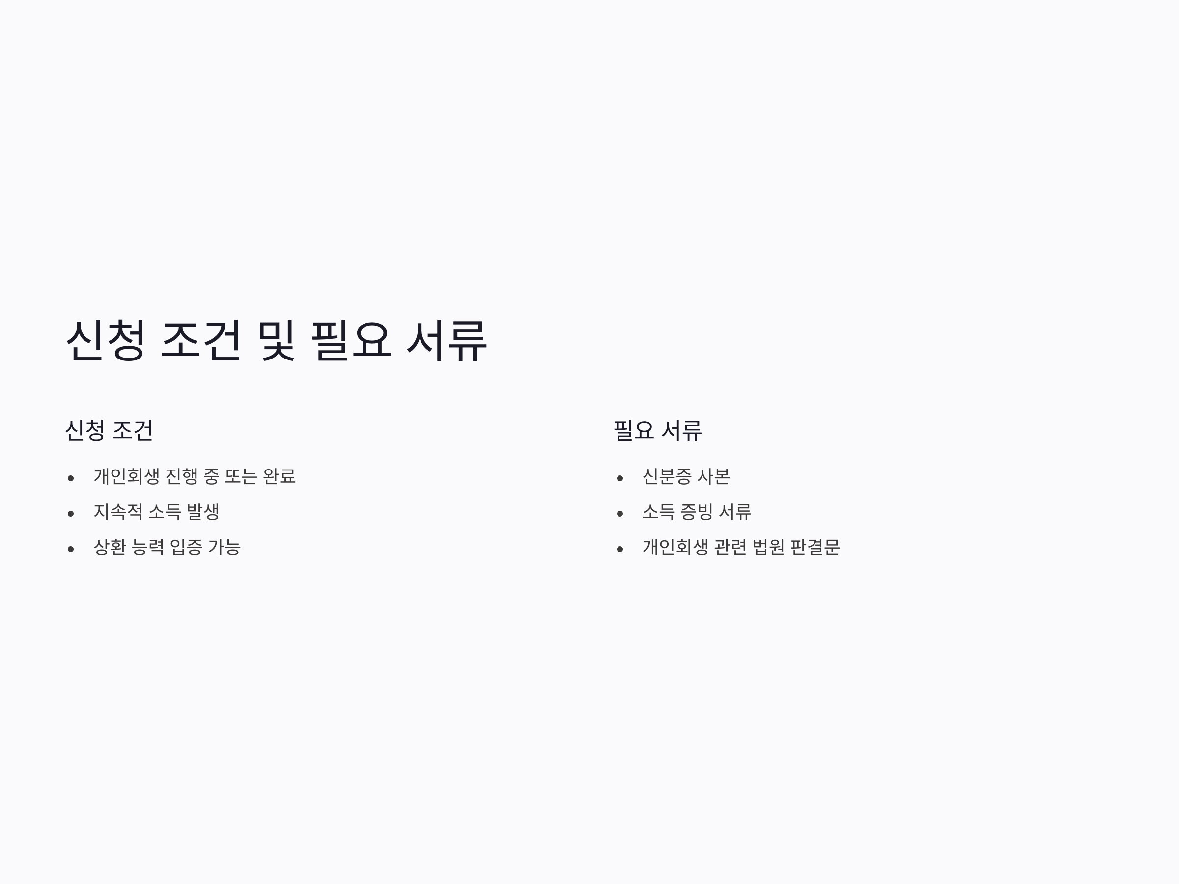 - 개인회생 절차를 진행 중이거나 완료 후 일정 기간이 지난 분.