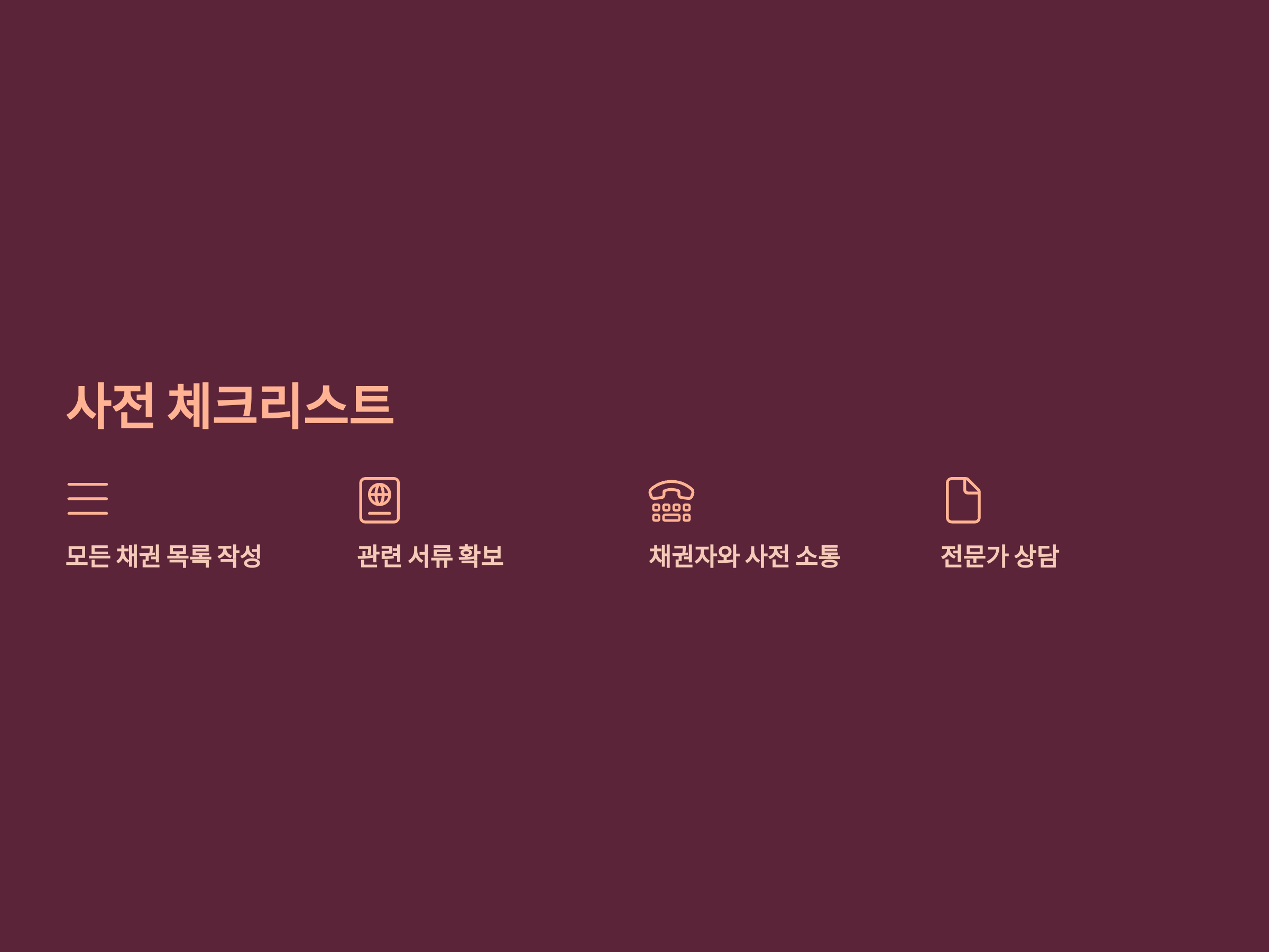 - 모든 채권 목록 작성: 크고 작은 채무를 모두 포함한 목록을 작성합니다.
