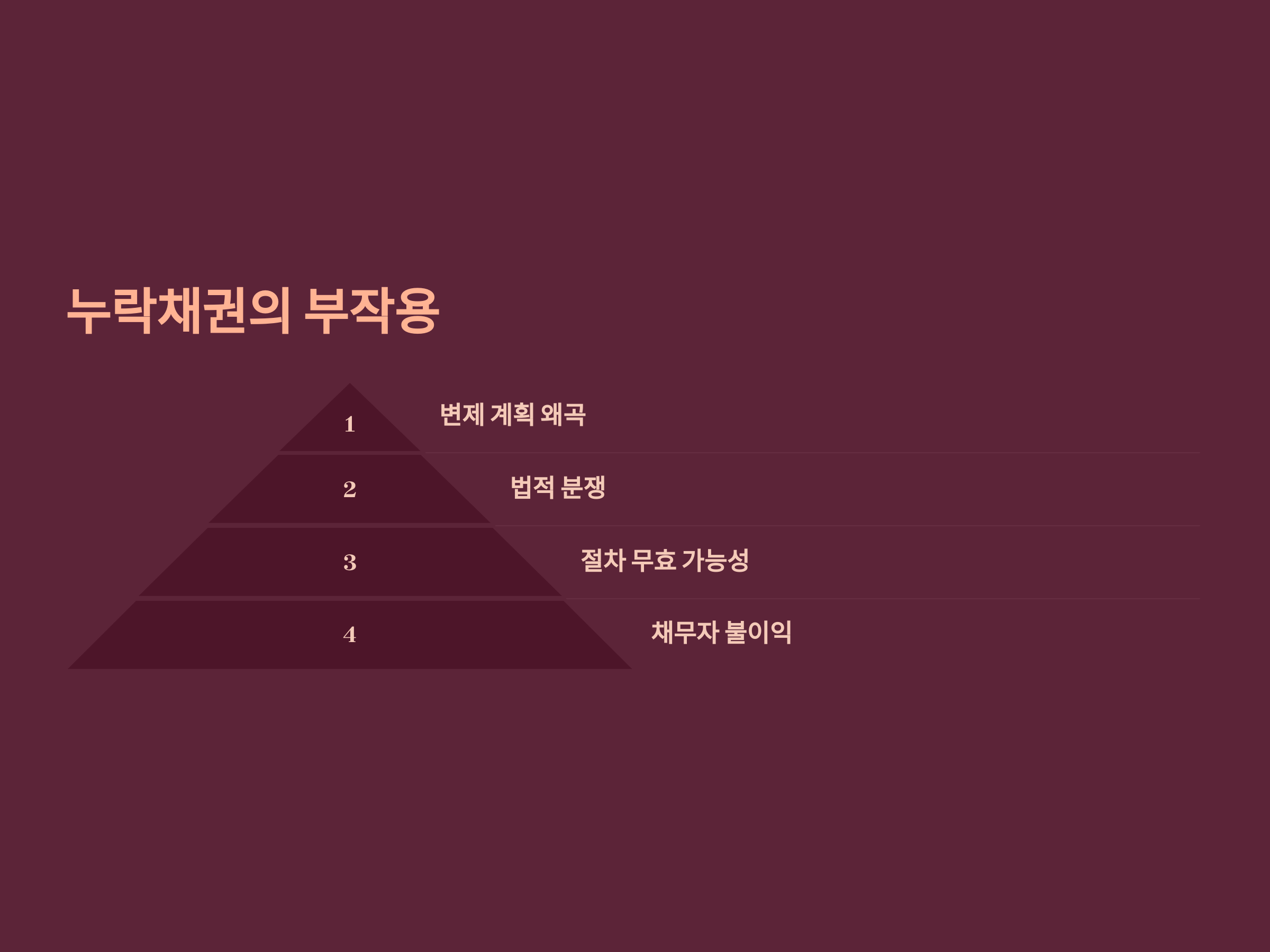 개인회생에서 누락된 채권은 절차에 다음과 같은 문제를 초래할 수 있습니다: