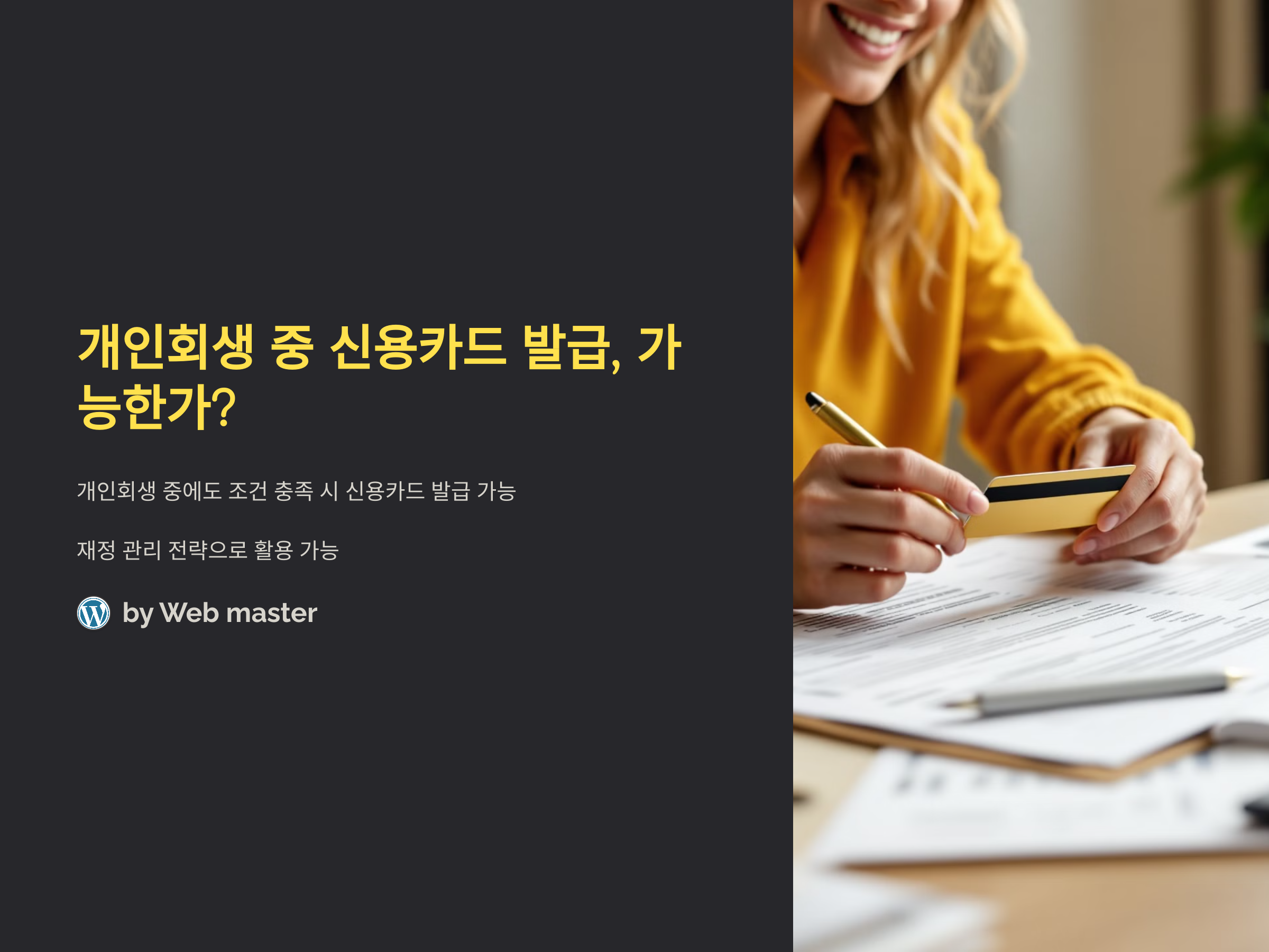 개인회생을 진행 중이라면 신용카드 발급에 대해 여러 가지 궁금증이 있을 것입니다. 대부분의 사람들이 개인회생 중에는 신용카드를 발급받을 수 없다고 생각하지만, 현실은 조금 다릅니다. 조건을 충족하면 개인회생 중에도 신용카드를 발급받을 수 있습니다. 본 포스팅에서는 개인회생자가 신용카드를 발급받을 수 있는 방법과 이를 통해 재정 관리를 어떻게 할 수 있는지에 대해 다룰 것입니다.