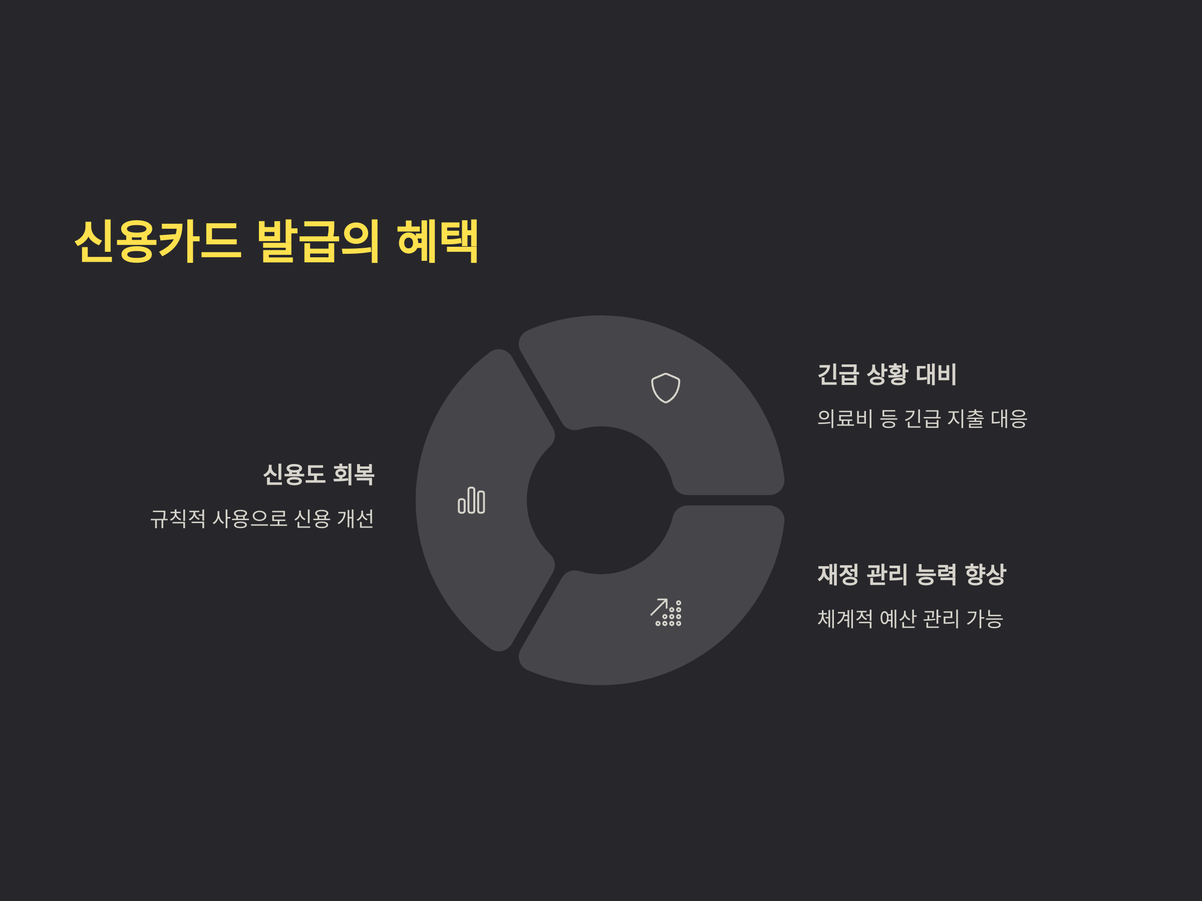 세 번째로, 재정 관리 능력을 키울 수 있습니다. 신용카드를 사용하며 체계적인 예산 관리와 지출 통제가 가능해지기 때문에, 장기적으로 재정 관리 능력이 향상됩니다. 이는 회생 절차를 마친 후에도 유용한 능력이 될 수 있습니다.