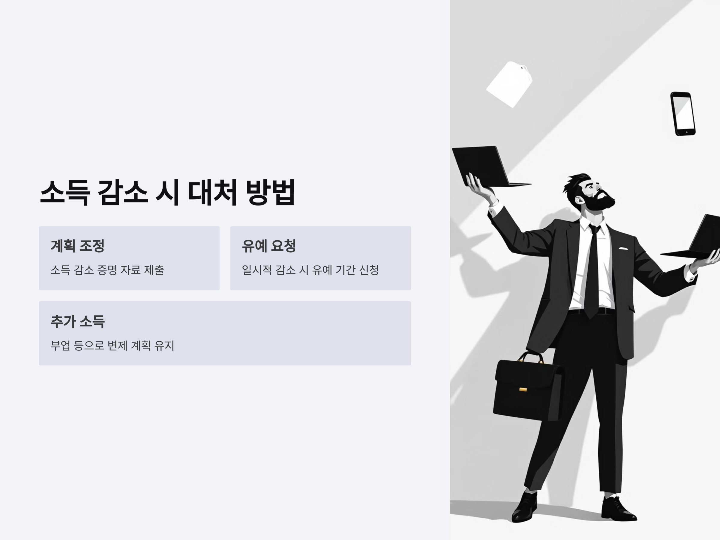 - 유예 기간 요청: 일시적인 소득 감소라면 유예 기간을 요청할 수 있습니다.