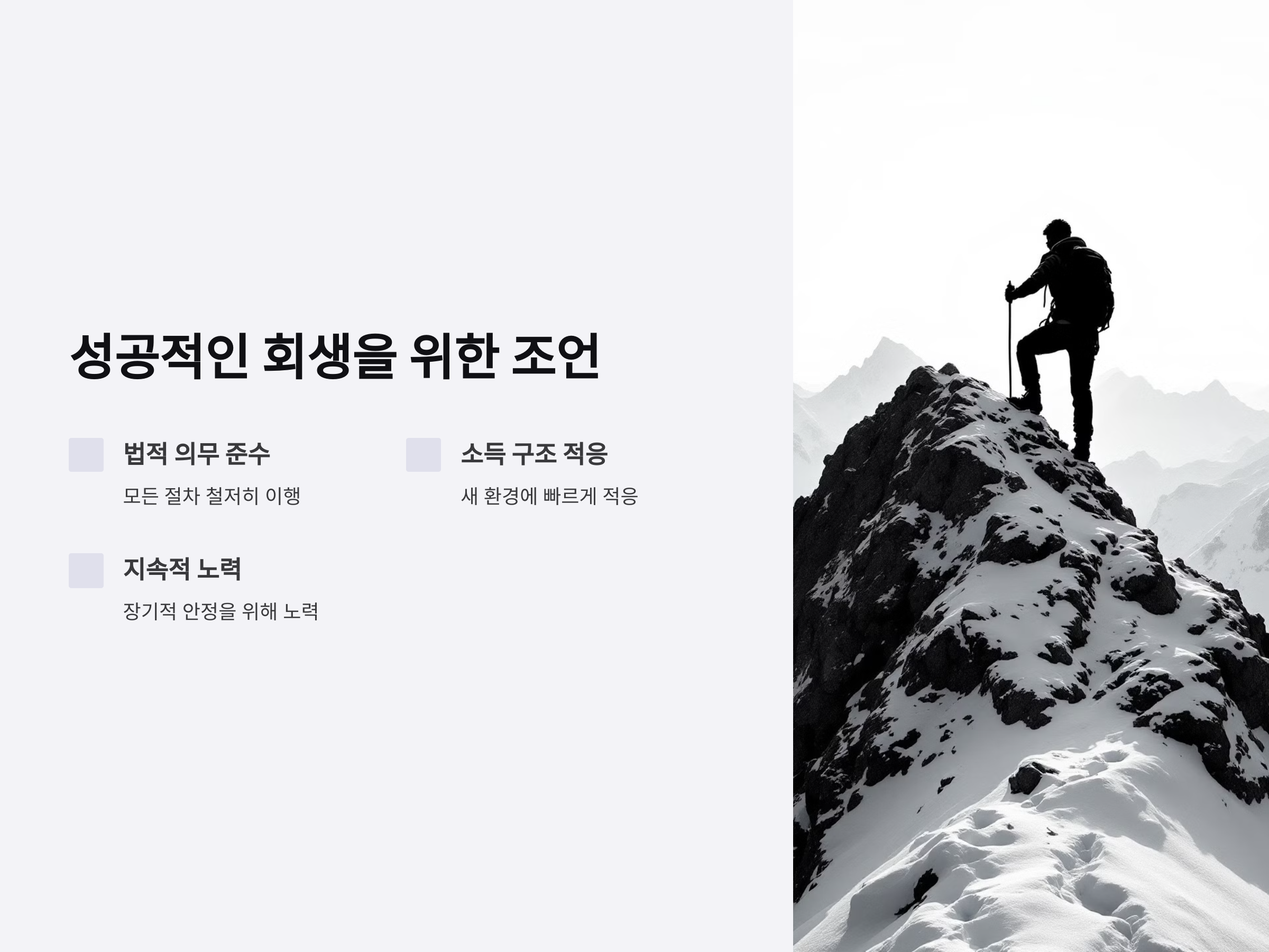 성공적인 이직은 개인회생 절차와 충돌하지 않아야 합니다. 법적 의무를 철저히 준수하며, 새로운 소득 구조에 적응하는 노력이 필요합니다.