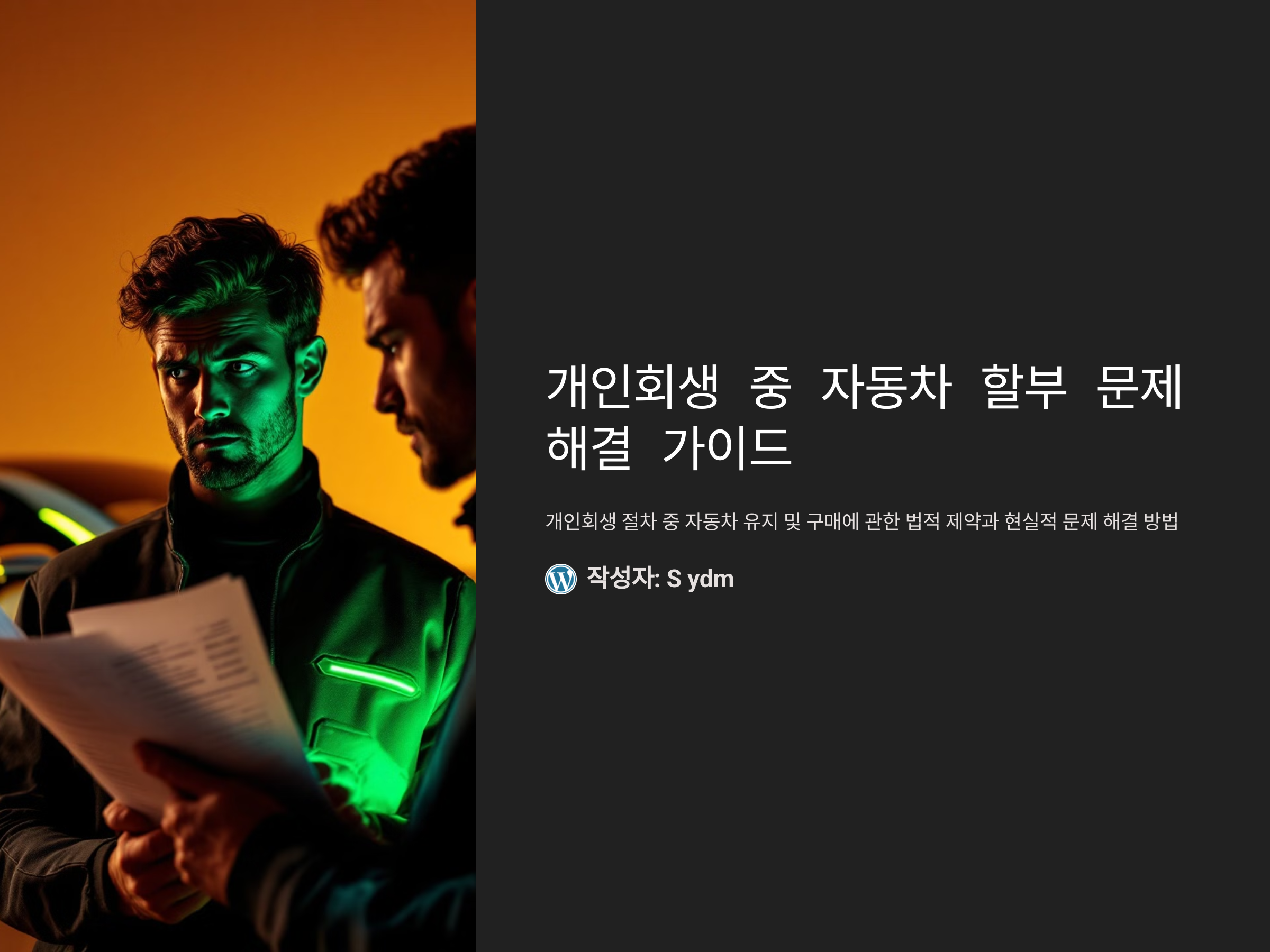 - 할부금 납부 필수: 개인회생 변제금 외에도 할부금을 지속적으로 납부해야 차량 소유권을 유지할 수 있습니다.