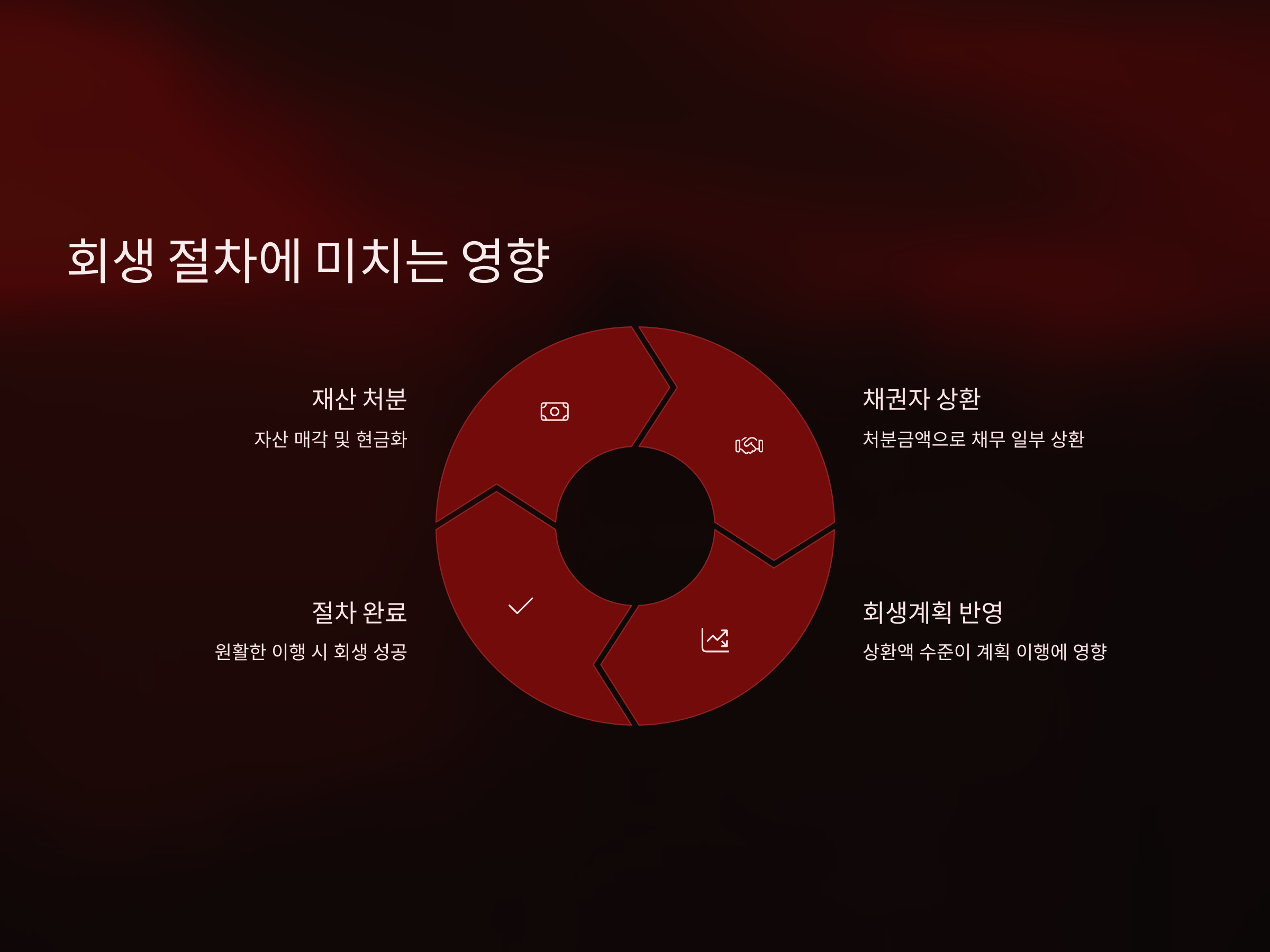 회생 절차에서 재산을 처분하여 상환한 금액이 크면 클수록, 회생 계획이 원활하게 이행될 가능성이 높습니다. 반면, 재산을 처분하지 않거나 처분 금액이 부족하면, 계획 이행에 어려움이 생기고, 나아가 회생 절차가 취소될 수도 있습니다.