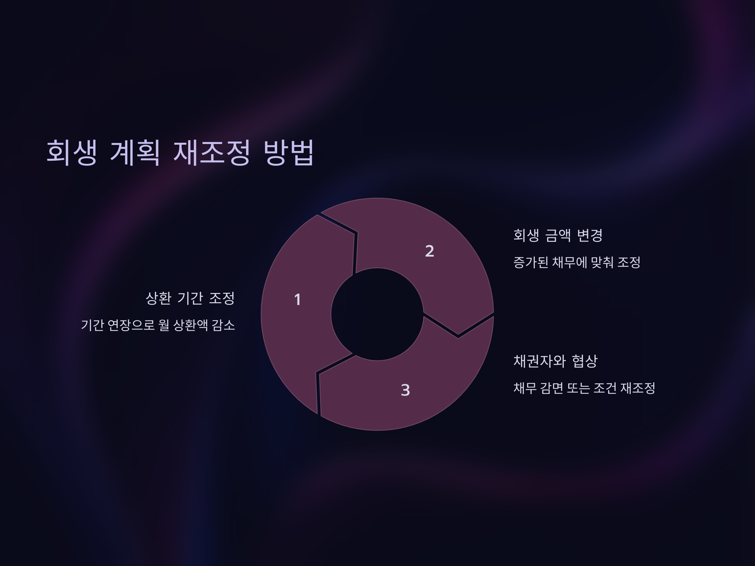 - 채권자와 협상: 채권자와 협상을 통해, 일부 채무를 감면하거나 상환 조건을 재조정할 수 있습니다. 이 과정은 법원의 승인이 필요할 수 있으며, 채권자와의 협상 결과에 따라 회생 절차가 원활히 진행될 수 있습니다.