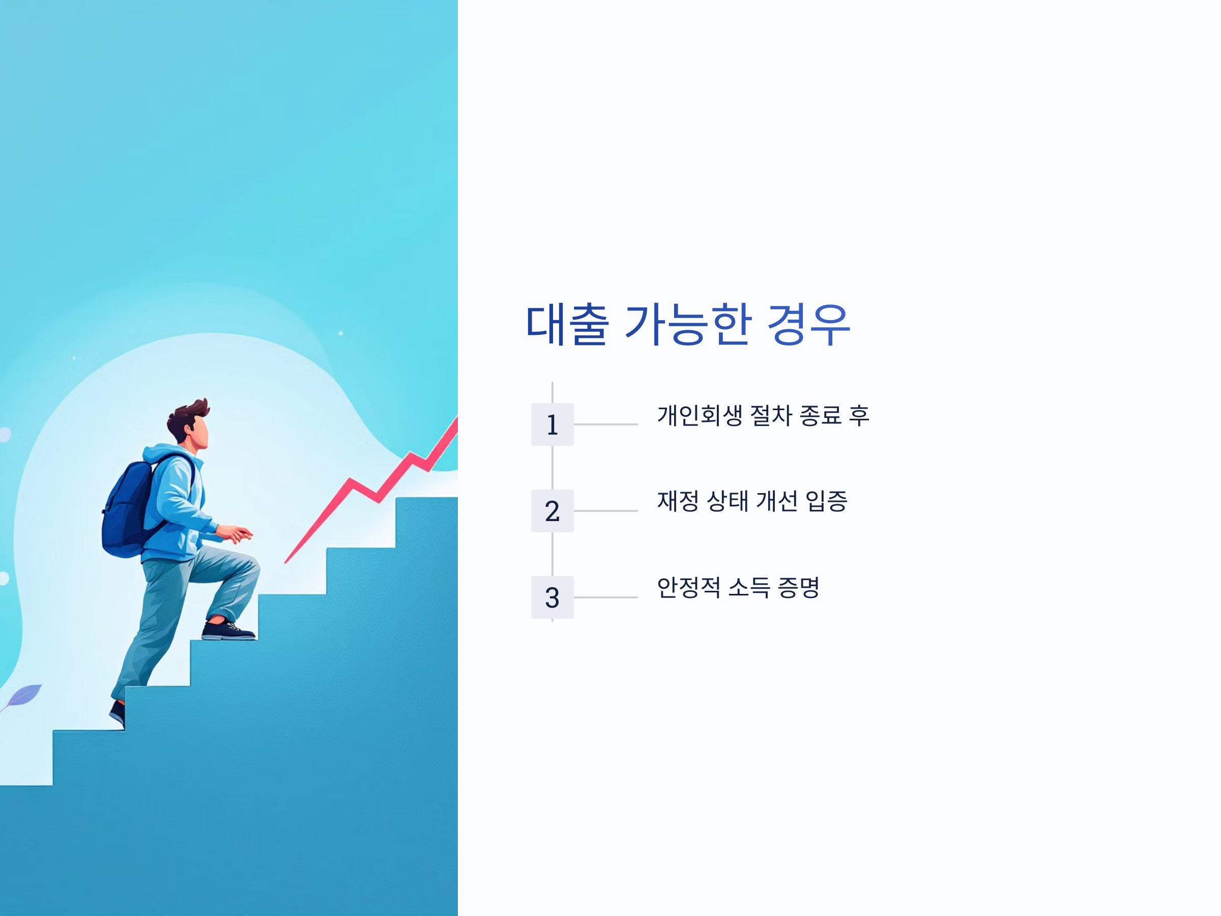 개인회생 중이라도 몇 가지 조건을 충족하면 대출을 받을 수 있는 가능성이 존재합니다. 예를 들어, 개인회생을 통해 일정 기간 동안 채무를 성실히 갚아왔고, 신용이 조금이라도 회복된 상태라면 일부 금융기관에서 대출을 받을 수 있습니다. 그러나 이 경우에도 대출한도가 매우 낮고, 이자율이 높게 책정될 가능성이 크기 때문에 신중하게 고려해야 합니다.