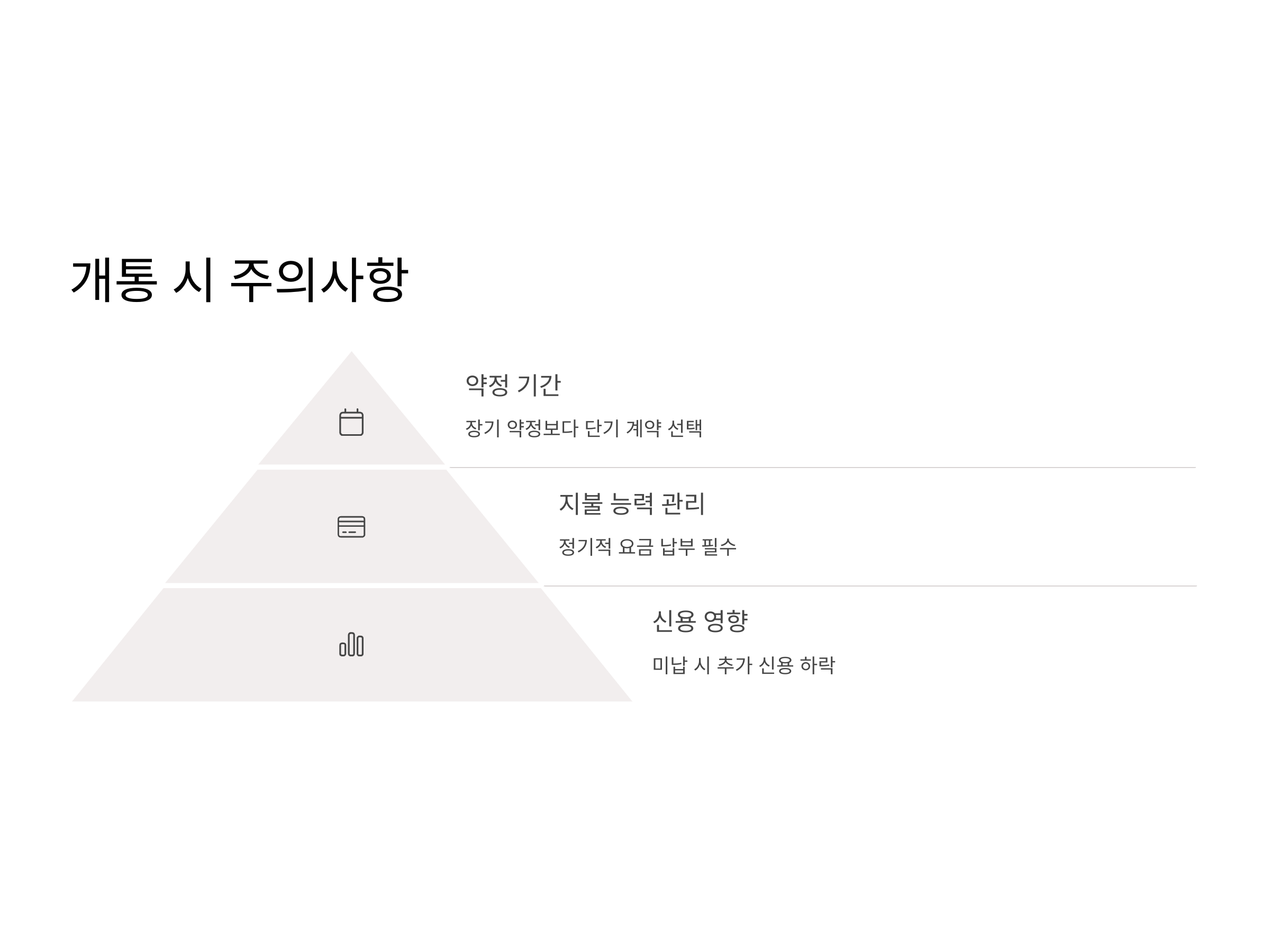 개인회생 중 핸드폰 개통을 고려할 때, 주의해야 할 점은 대체로 두 가지입니다. 첫째, 약정 기간과 관련된 문제입니다. 개인회생을 진행 중일 경우, 장기적인 약정 계약을 체결하기보다는 단기 계약이나 선불 방식의 서비스를 선택하는 것이 더 안전합니다. 둘째, 개통 후에도 지불 능력에 대한 관리가 필요합니다. 핸드폰 요금을 정기적으로 납부하지 않으면, 신용에 또 다른 부정적인 영향을 미칠 수 있으므로 철저히 관리해야 합니다.