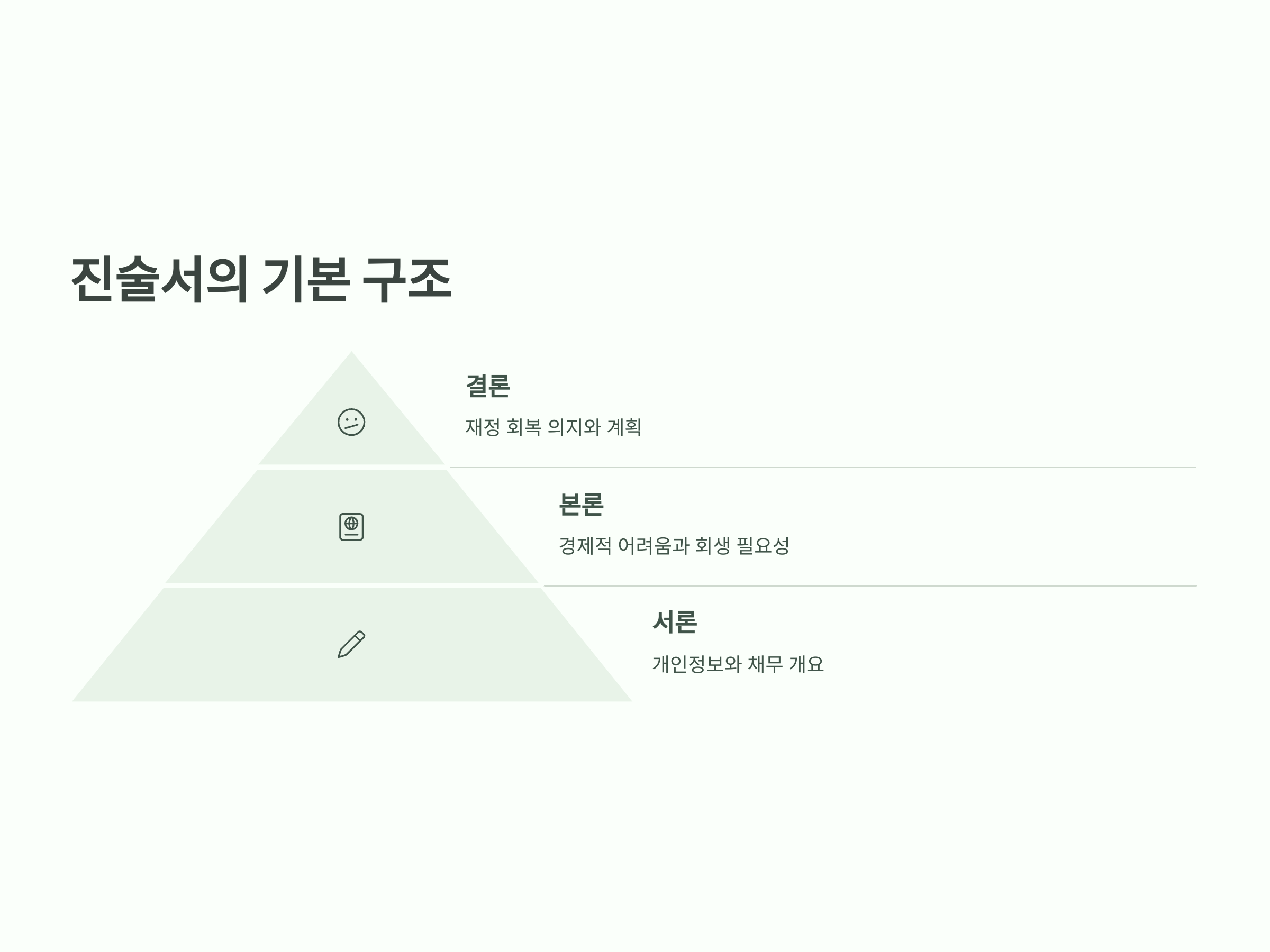 개인회생을 진행하는 데 있어 진술서의 작성은 반드시 정확하고 신뢰성 있는 정보로 채워져야 합니다. 진술서 작성이 잘못될 경우, 회생 절차에 불이익을 당할 수 있으며, 법원의 승인을 받지 못할 수도 있습니다. 그럼 지금부터 개인회생 진술서 작성 요령에 대해 자세히 살펴보겠습니다.