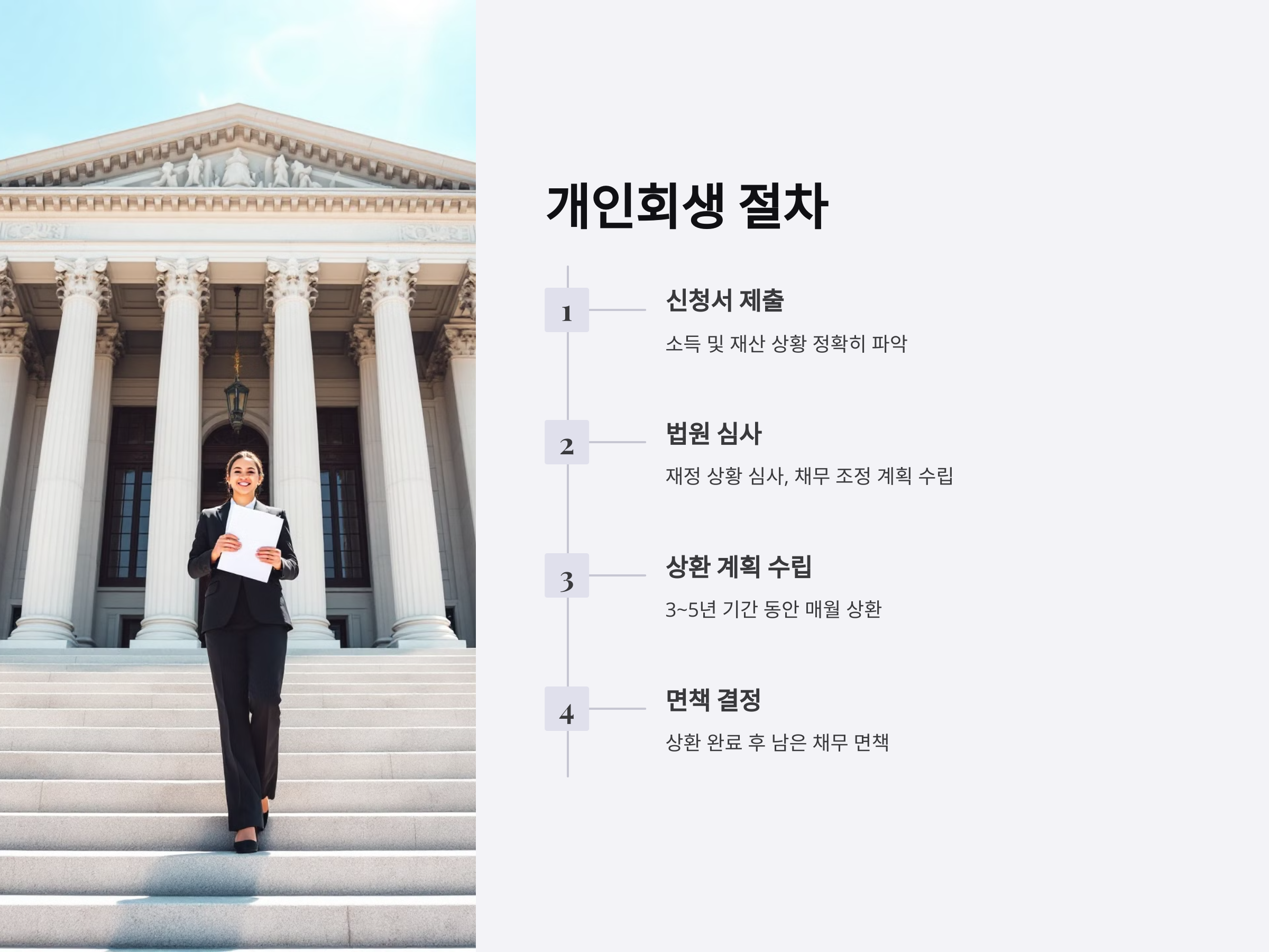 - 새로운 출발: 일정 기간 동안 상환을 완료하면, 나머지 채무는 면책될 수 있습니다.