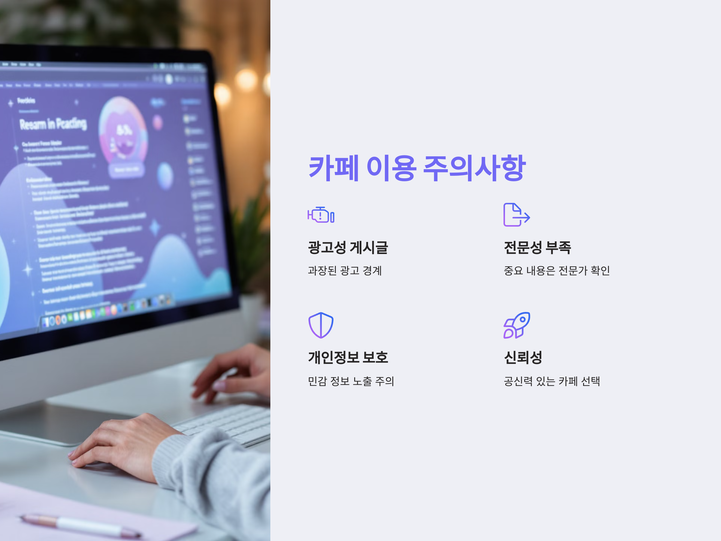 - 광고성 게시글 경계: 일부 카페에는 과장된 광고성 게시글이 올라오기도 합니다.
