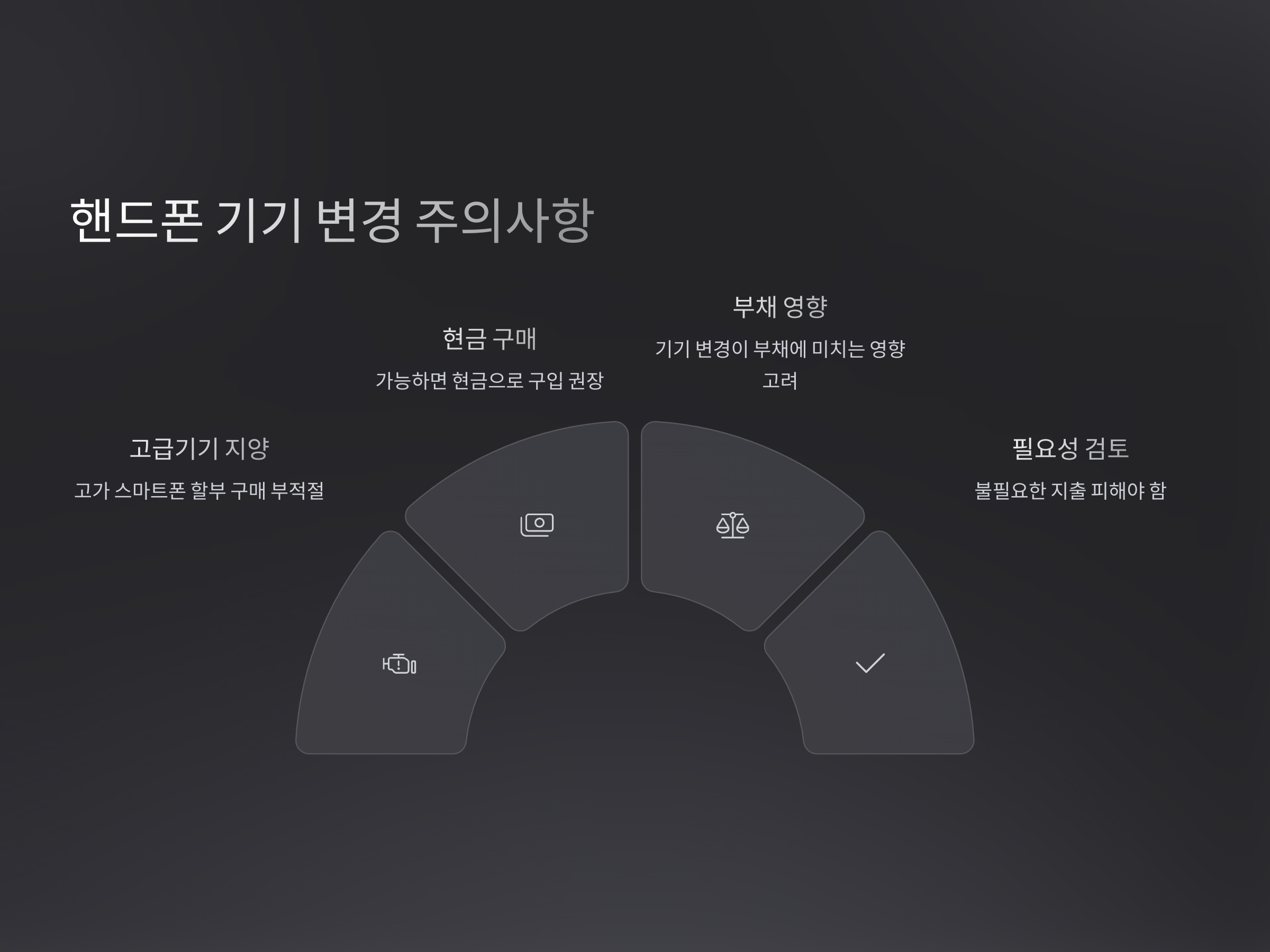 핸드폰 기기를 바꾸기 전에는 자신의 부채 상황을 정확히 파악하고, 개인회생 절차에 미치는 영향을 충분히 고려해야 합니다. 만약, 기기 변경이 불가피하다면, 가능하면 현금으로 구입하는 것이 좋습니다.