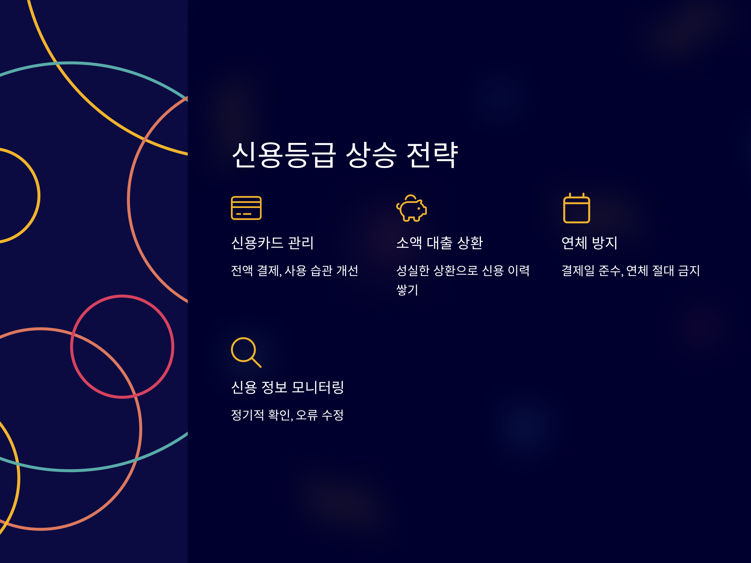 신용카드를 잘 관리하고 대출 상환을 성실히 이행하며, 연체 없이 신용 거래를 계속 유지하는 것이 중요합니다. 또한, 신용정보 오류를 확인하고 수정하는 것도 중요한 요소입니다.