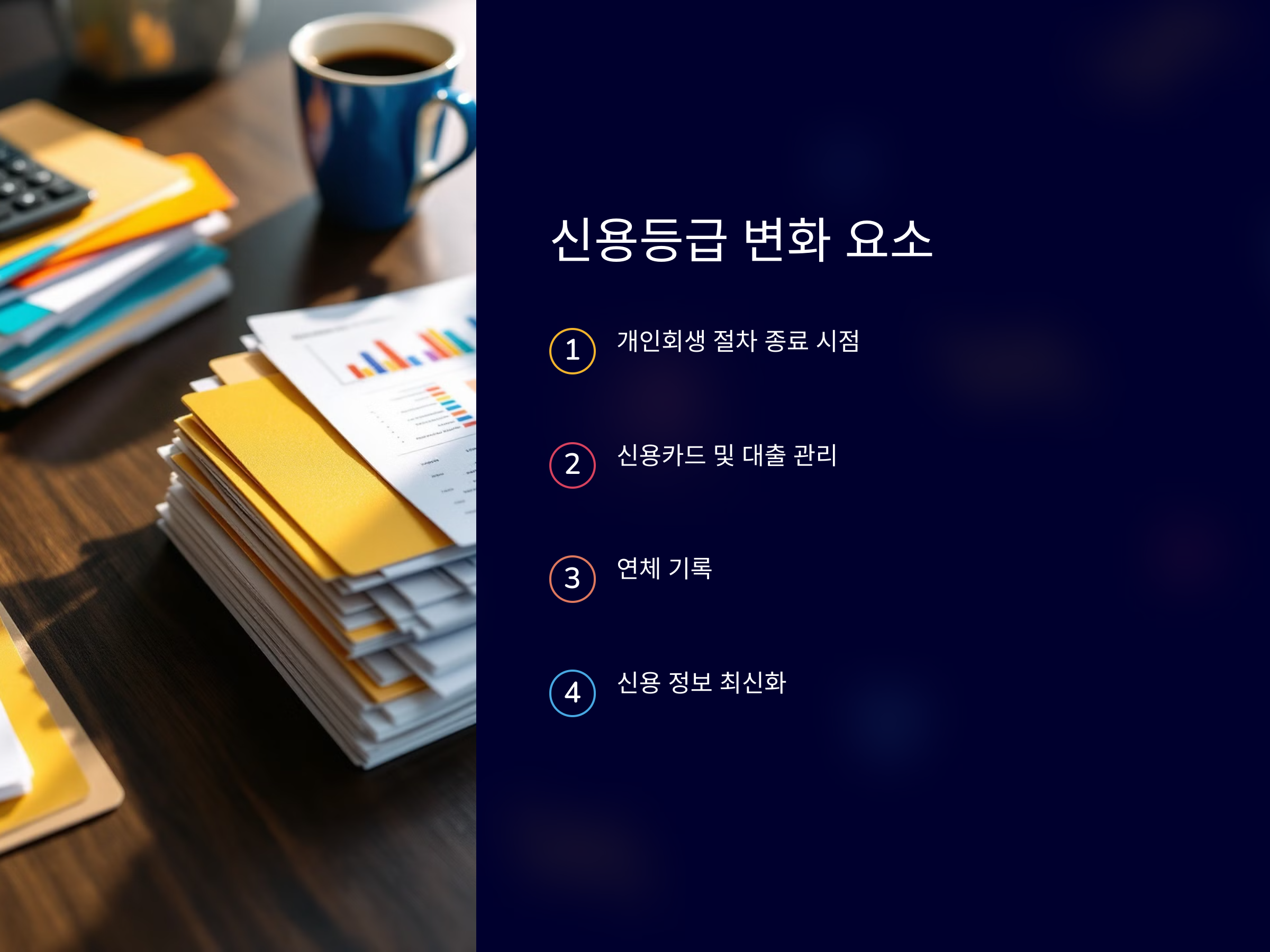 개인회생 후 신용등급의 변화는 단순한 시간의 흐름만으로 결정되지 않습니다. 신용등급 상승의 시기를 예측하려면 여러 가지 요소를 고려해야 합니다. 주요 요소로는 다음과 같습니다: