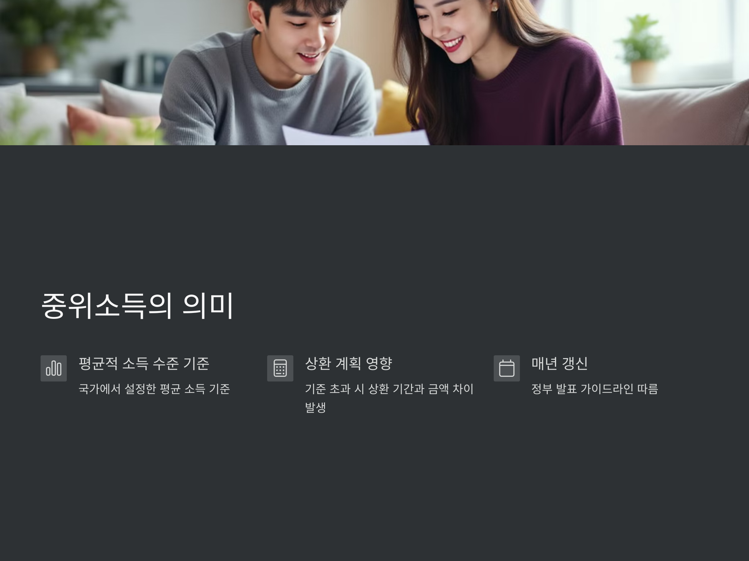 2025년부터 적용되는 2인 가족의 중위소득 기준은 이전과 다소 차이가 있을 수 있습니다. 정부는 매년 중위소득 기준을 발표하는데, 이는 국민들의 경제 상황을 반영하기 위한 조치입니다. 특히 2인 가족의 경우, 2025년의 중위소득 기준에 따라 상환금액과 기간이 달라질 수 있기 때문에 중요한 참고사항이 됩니다.