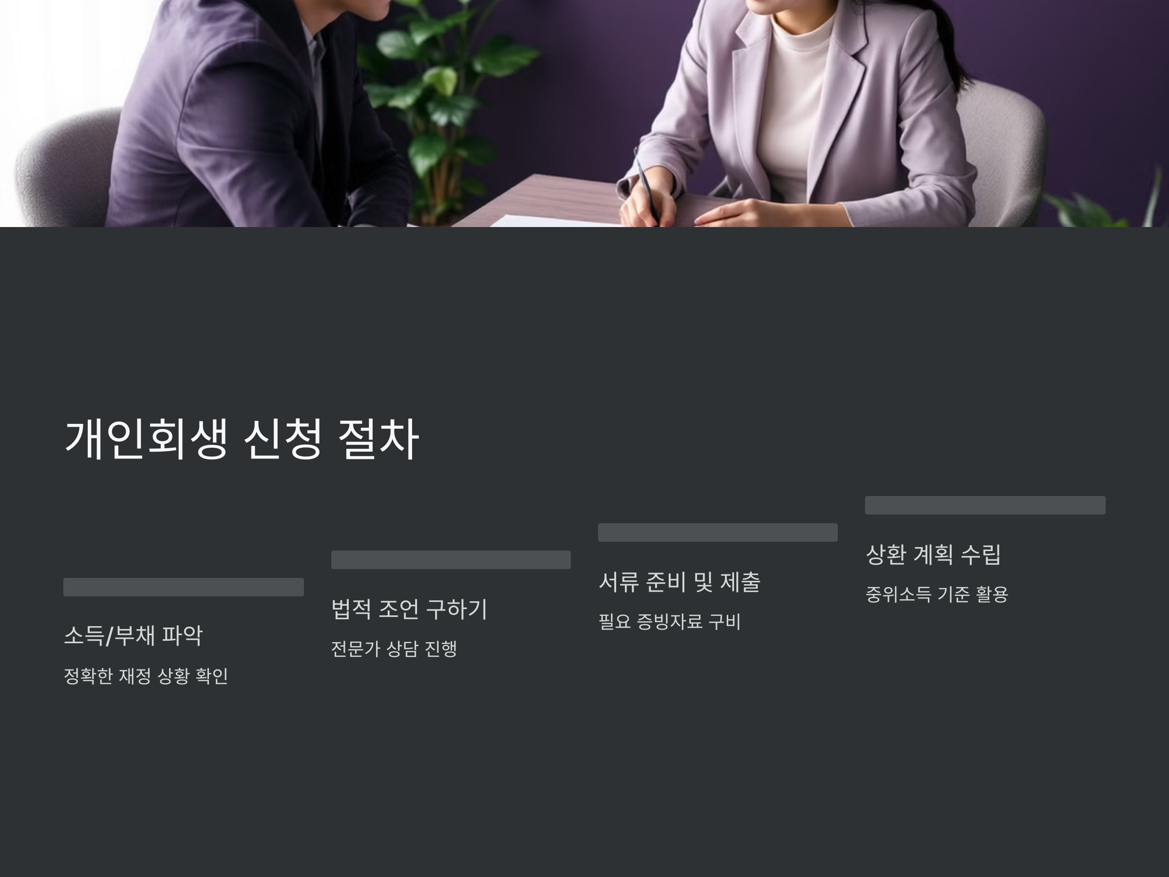 개인회생 신청 시, 소득과 부채 상황을 잘 파악하고, 법적 조언을 받는 것이 바람직합니다. 2인 가족의 경우, 중위소득을 기준으로 상환 계획을 세울 수 있기 때문에 이 기준을 잘 활용하면 유리한 조건을 맞출 수 있습니다.