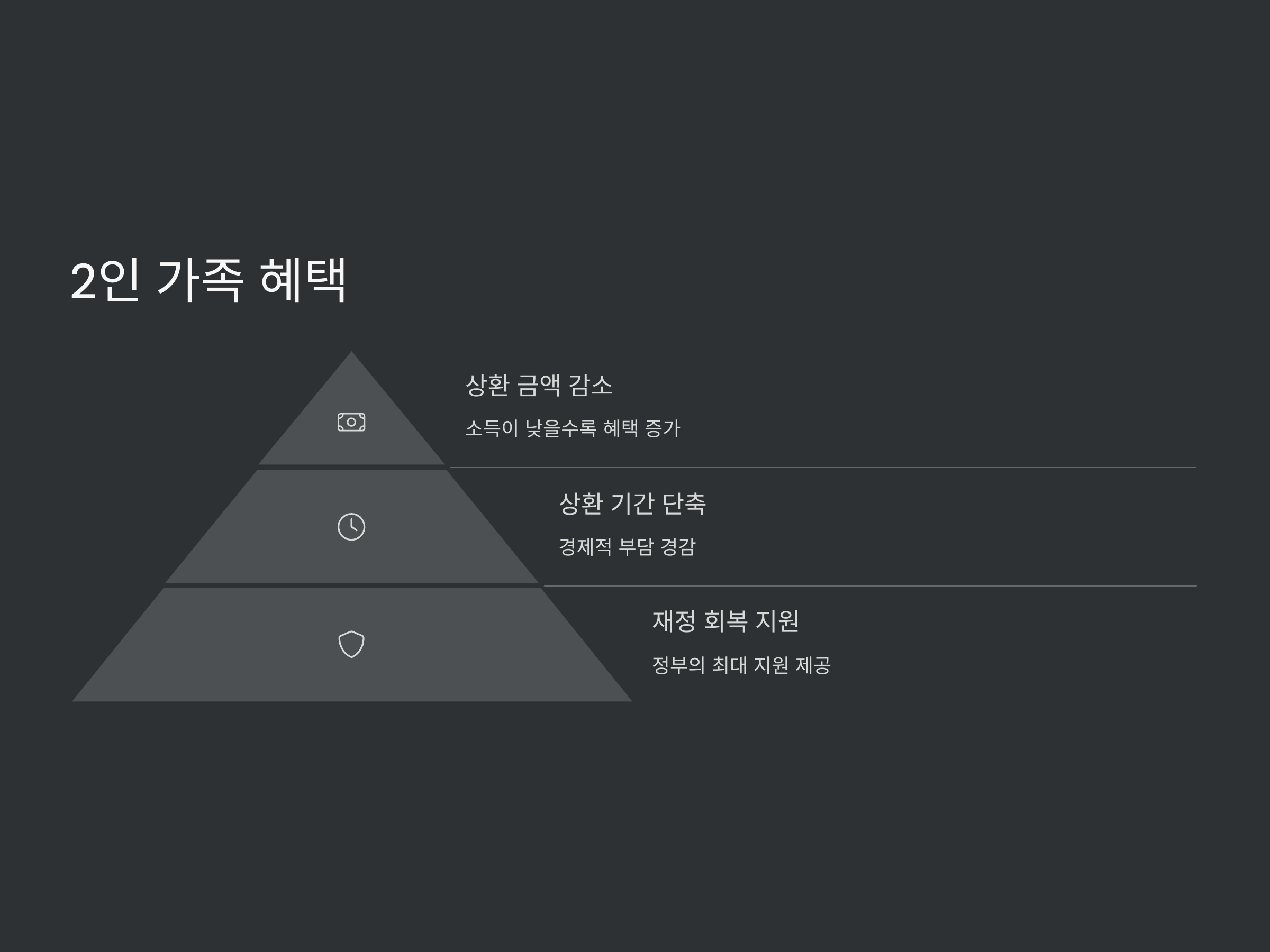 중위소득의 기준은 매년 갱신되며, 정부가 발표하는 가이드라인을 따릅니다. 2인 가족의 경우, 중위소득 기준이 낮다면 더 짧은 기간 내에 채무를 상환할 수 있는 혜택을 볼 수 있으며, 반대로 소득이 높은 경우 상환 금액이 증가할 수 있습니다.