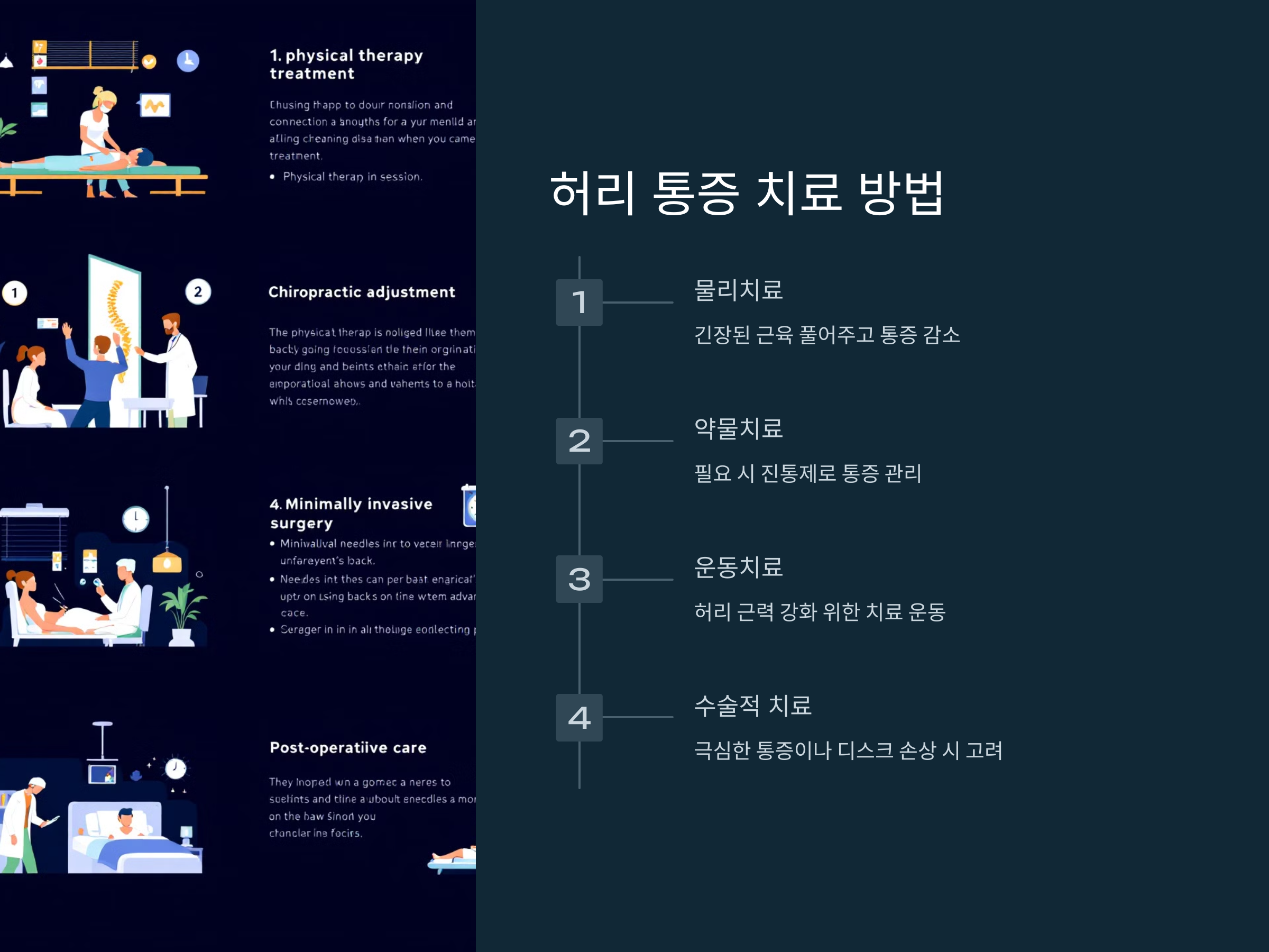 허리 통증이 이미 시작됐다면 전문적인 치료를 고려해야 할 수도 있습니다. 다음은 주요 치료 방법들입니다.