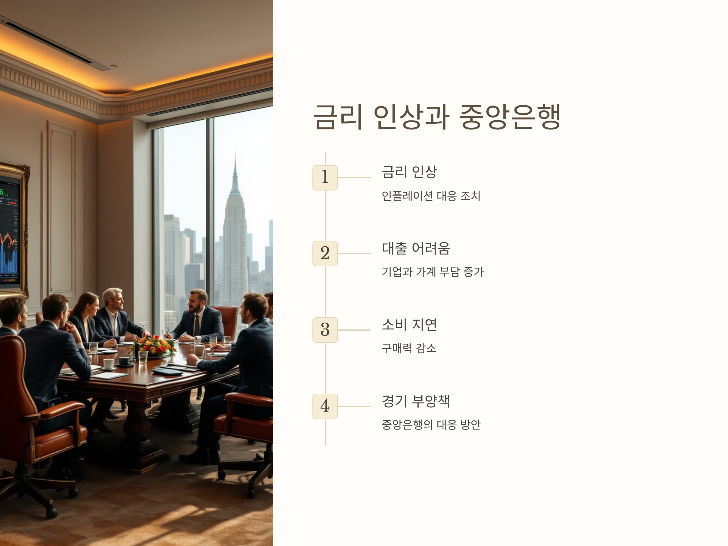 금리는 경제의 전반적인 흐름에 큰 영향을 미칩니다. 중앙은행이 금리를 인상하면, 대출이 어려워지거나 소비자들이 구매를 미루게 됩니다. 이로 인해 경기가 더 둔화될 수 있습니다. 경기 침체를 방지하기 위해 중앙은행은 금리를 낮추거나 기타 경기 부양책을 추진할 수 있지만, 금리 인상이 경기 침체의 징후일 수 있다는 점을 염두에 두어야 합니다.