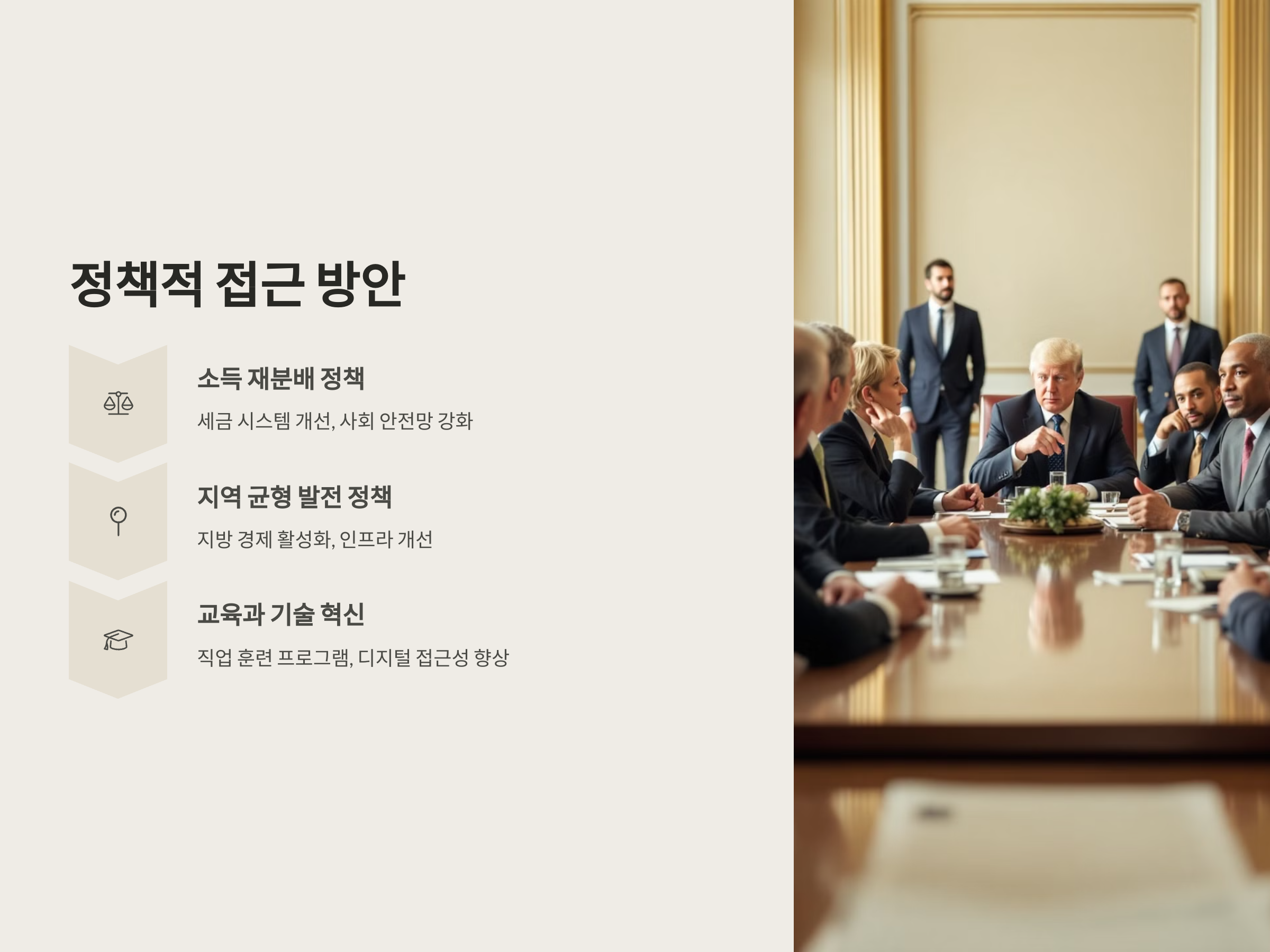 셋째, 교육과 기술 혁신을 통한 경제적 기회 확대가 필요합니다. 정부는 저소득층을 대상으로 한 직업 훈련 프로그램과 기술 교육을 제공함으로써, 이들이 새로운 기술 환경에 적응할 수 있도록 지원해야 합니다. 또한, 디지털 기술에 대한 접근성을 높여 모든 계층이 기술 발전의 혜택을 누릴 수 있도록 해야 합니다.